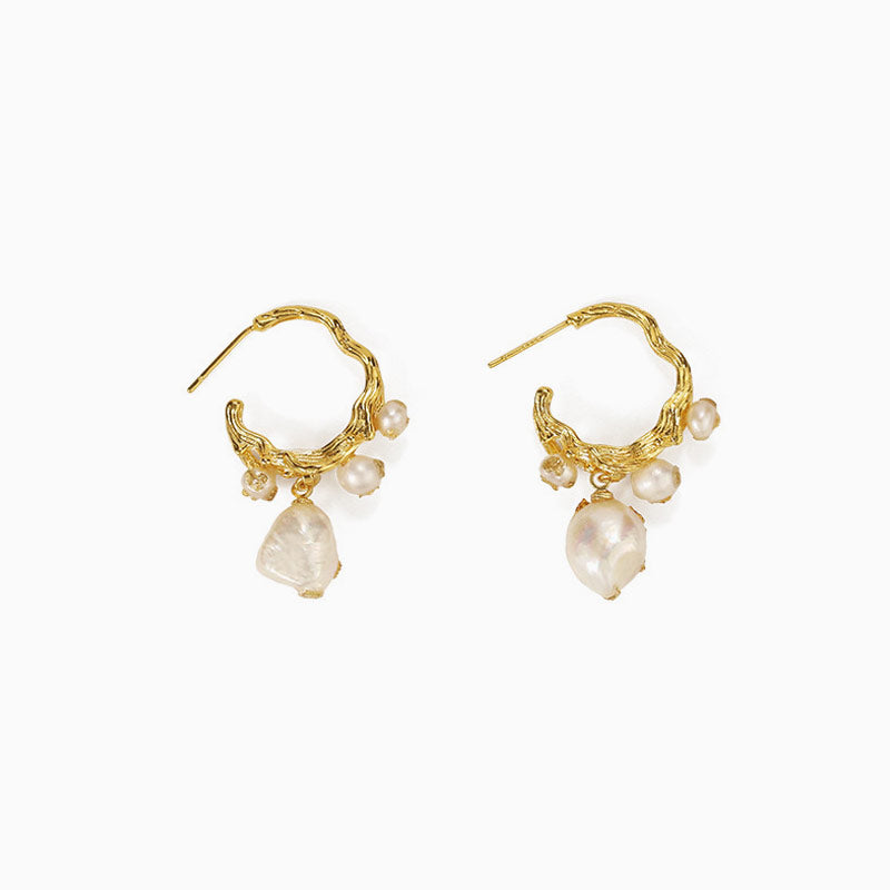 Surprised by delicate faux pearl embellishments. this pair of luxury hoop earrings will give a unique touch to your look. These stunning pearl earrings also feature an asymmetric hoop end. a gold-tone plated finish and a latch hoop fastening. Dress up your daytime outfit with it for a glamorous look. Our designer jewelry collection also brings out many designer pearl earrings for women. Why not just match your outfit with one?