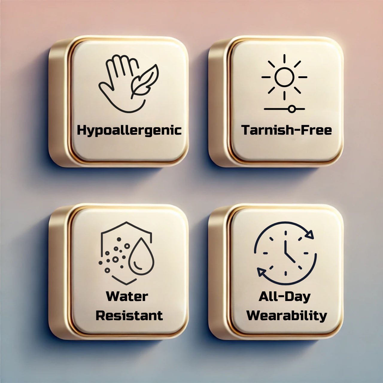 - Water, Sweat, and Heat Resistant. (No discoloration, No Tarnishing).