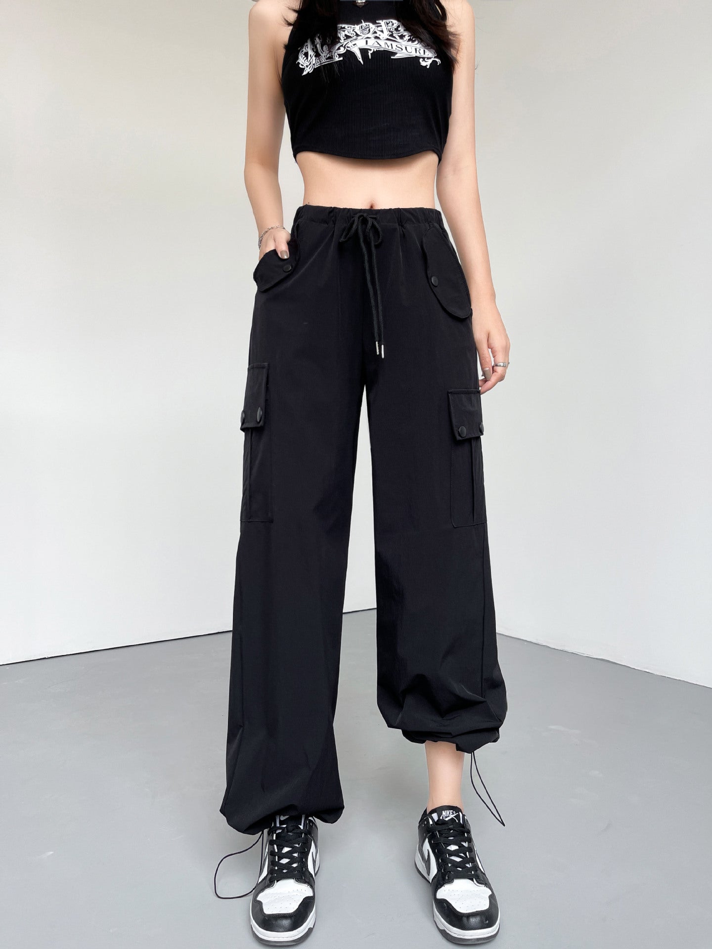 Hip-Hop Style Women Fashion Drawstring Casual Wide-Leg Jogger Pants