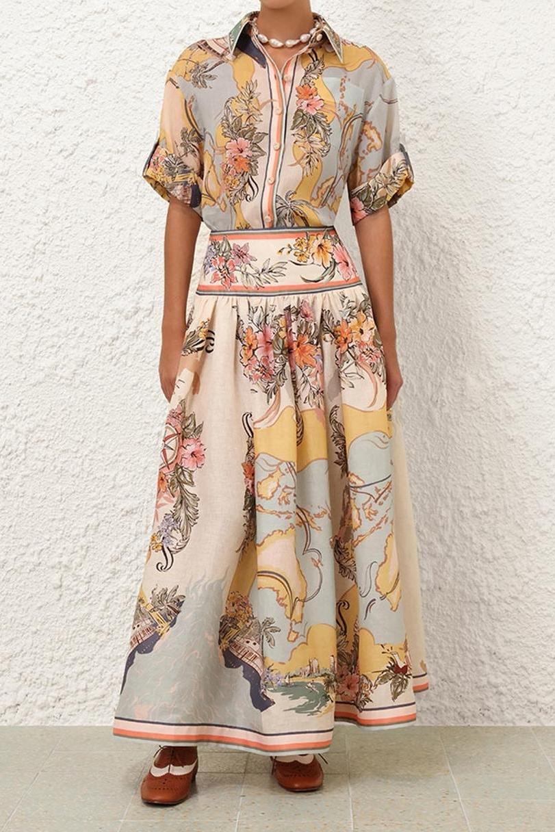 This vintage wide waist A-line skirt combines timeless elegance with vintage charm. Designed to accentuate the waist and create a flattering silhouette, the wide waistband enhances the hourglass figure. The A-line cut is elegant and fluid, adding a dynamic and classic touch to any outfit. From a casual daytime look to an elegant evening look, this skirt is a versatile essential for any wardrobe.