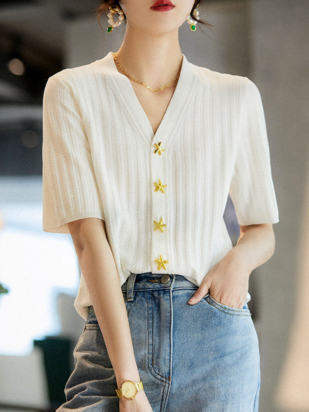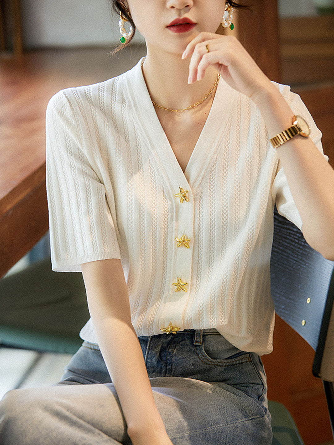 Jessica V-Neck Vertical Striped Knitted Cardigan-Black