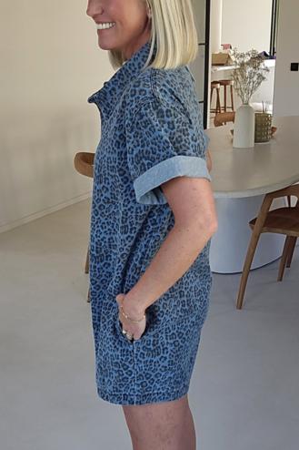 Meet your new off-duty favorite — the Jini Jeans Playsuit in Blue Leo. Crafted from a breathable cotton-blend fabric, this laid-back one-piece features an eye-catching leopard print with an effortlessly loose fit that’s perfect for relaxed days or weekend getaways.