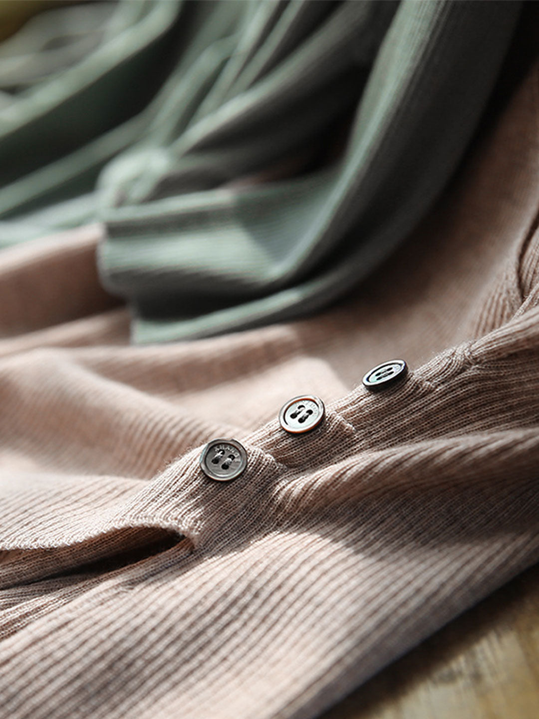 Jocelyn Casual V-Neck Solid Color Knitted Top-Green