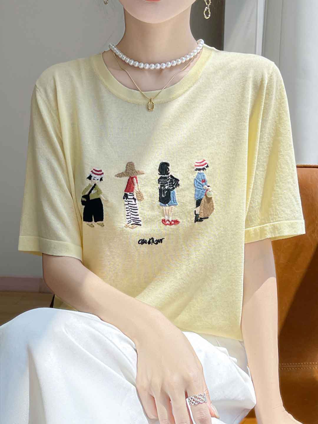 Jocelyn Loose Crew Neck Embroidered Knitted Top