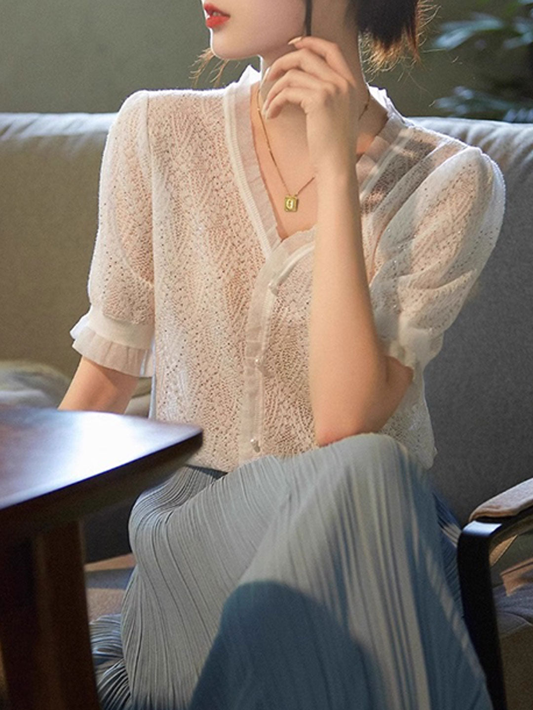 Kayla Elegant V-neck Auricular Knitted Sweater-Purple