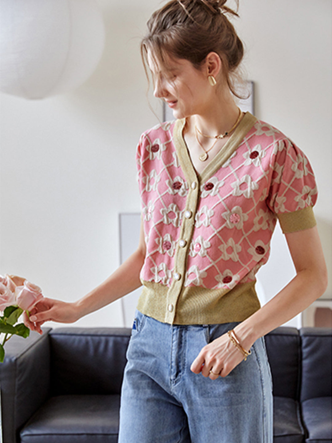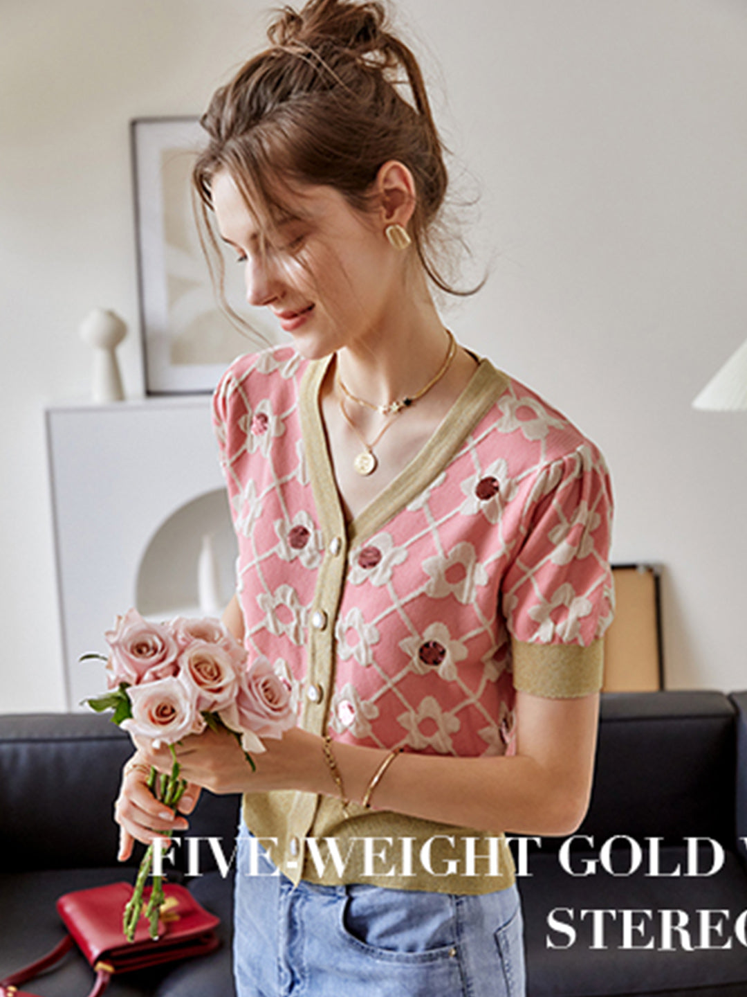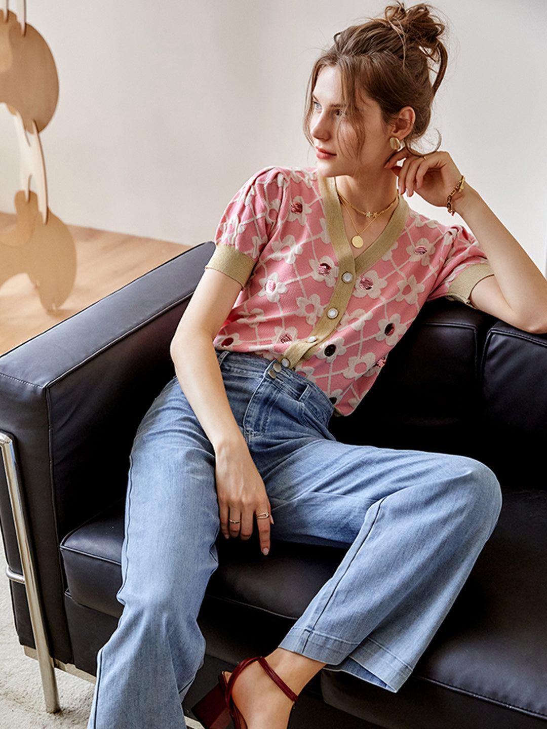 Kimberly Classic V-neck Slim-fit Short-sleeved Knitted Top