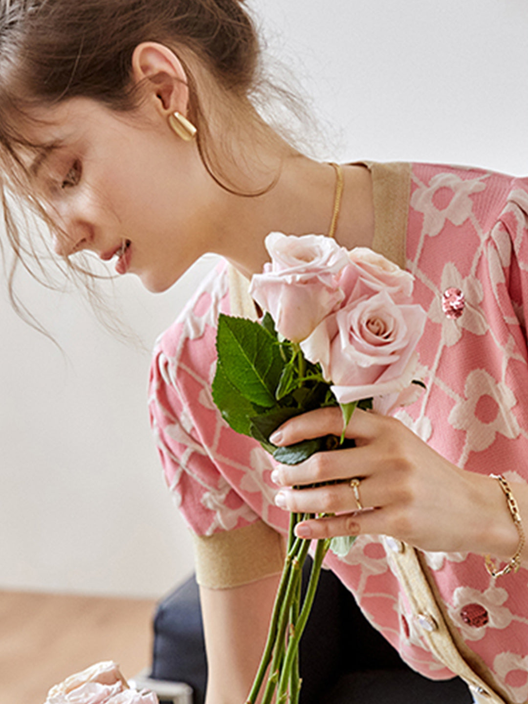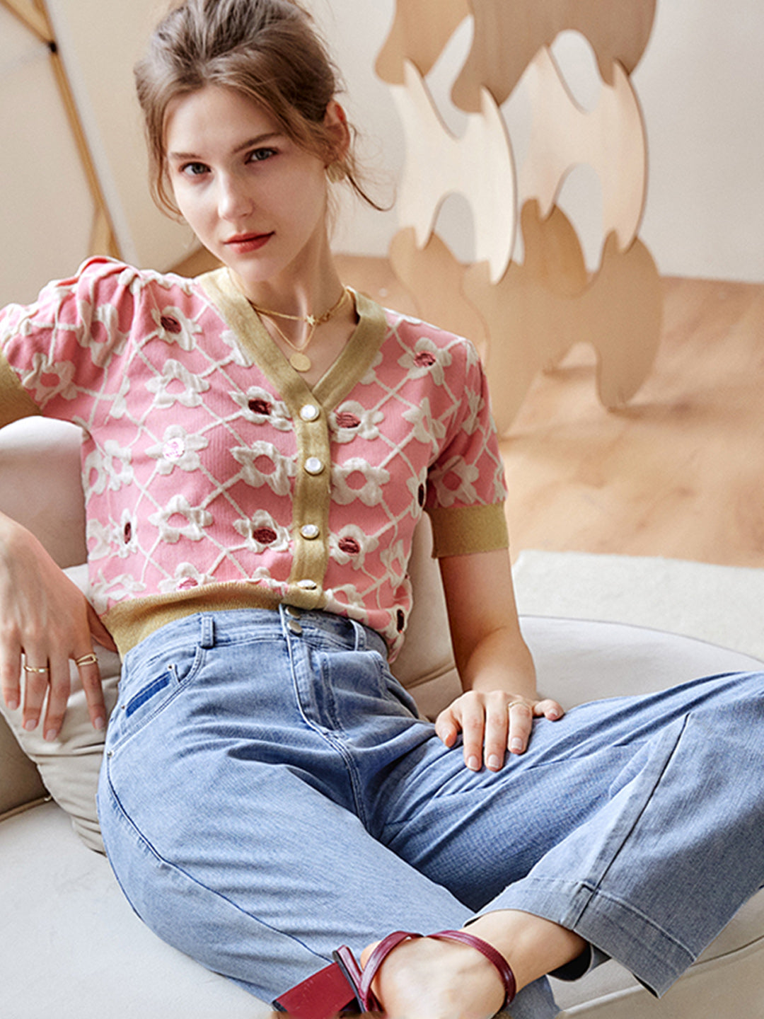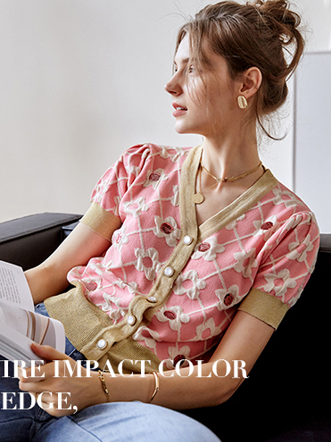 Kimberly Classic V-neck Slim-fit Short-sleeved Knitted Top
