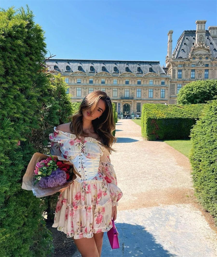 Expertly crafted with vintage-inspired details, the Kimberly Corset Mini Dress is the perfect addition to your wardrobe. Featuring an off shoulder design, long sleeves, and a flattering A-line silhouette, this dress exudes elegance and charm. The square neckline and bandage corset add a touch of fairy-like whimsy, making it ideal for parties and special occasions.