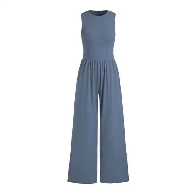 Introducing the Liora Elegant Sleeveless Jumpsuit, a refined wardrobe staple. Crafted from blended fabric, this jumpsuit features a sleek solid color for timeless sophistication. The round neckline and sleeveless cut offer understated elegance, while the elasticated waist creates a flattering silhouette. Great for both casual outings and special occasions, this versatile and Wearable jumpsuit adds effortless charm to your ensemble.