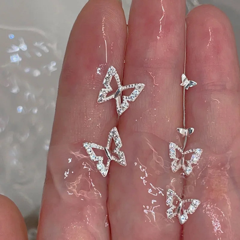 Lizakosht Mini Butterfly Stud Earrings Silver Rhinestone for Women and Girls Fashion Jewelry