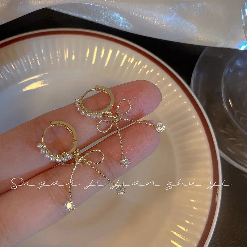 Lizakosht New Love Peach Zircon Golden Bow Earrings For Women Personality Fashion Earrings Wedding Jewelry Birthday Anniversary Gifts