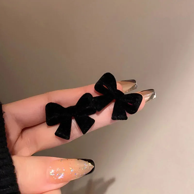 LIZAKOSHT Classic Winter Pearl Pendant Flocking Bowknot Stud Earrings for Women Temperament Happy New Year Gift Ladies Jewelry Accessories