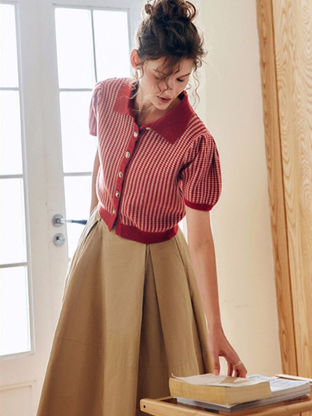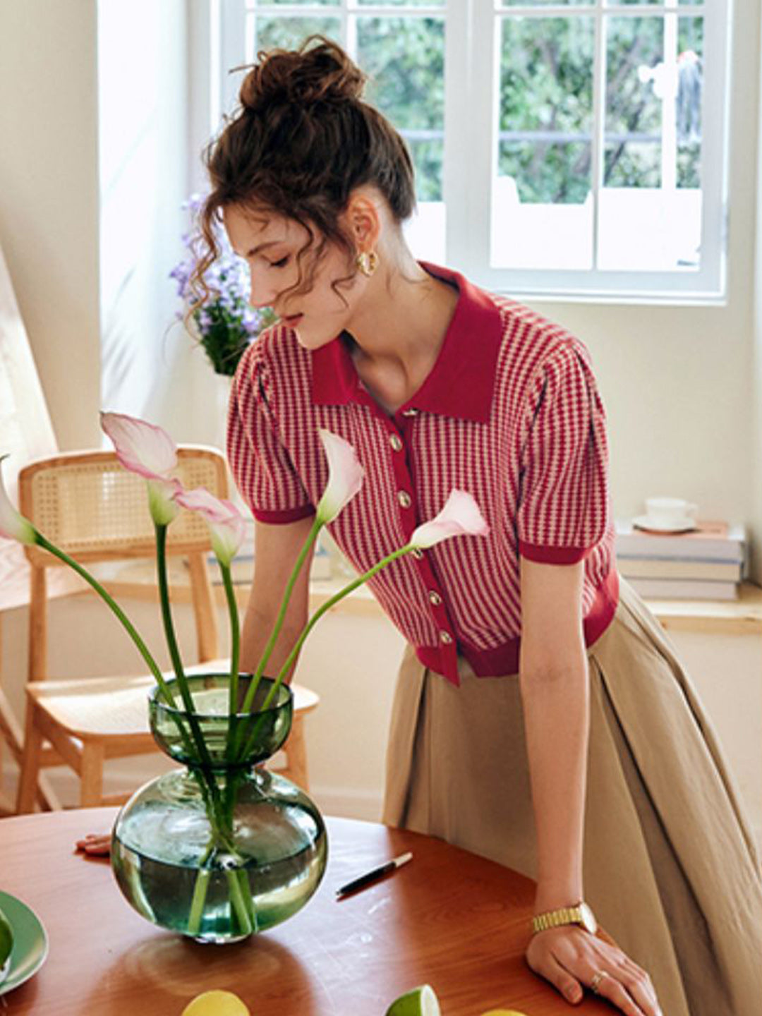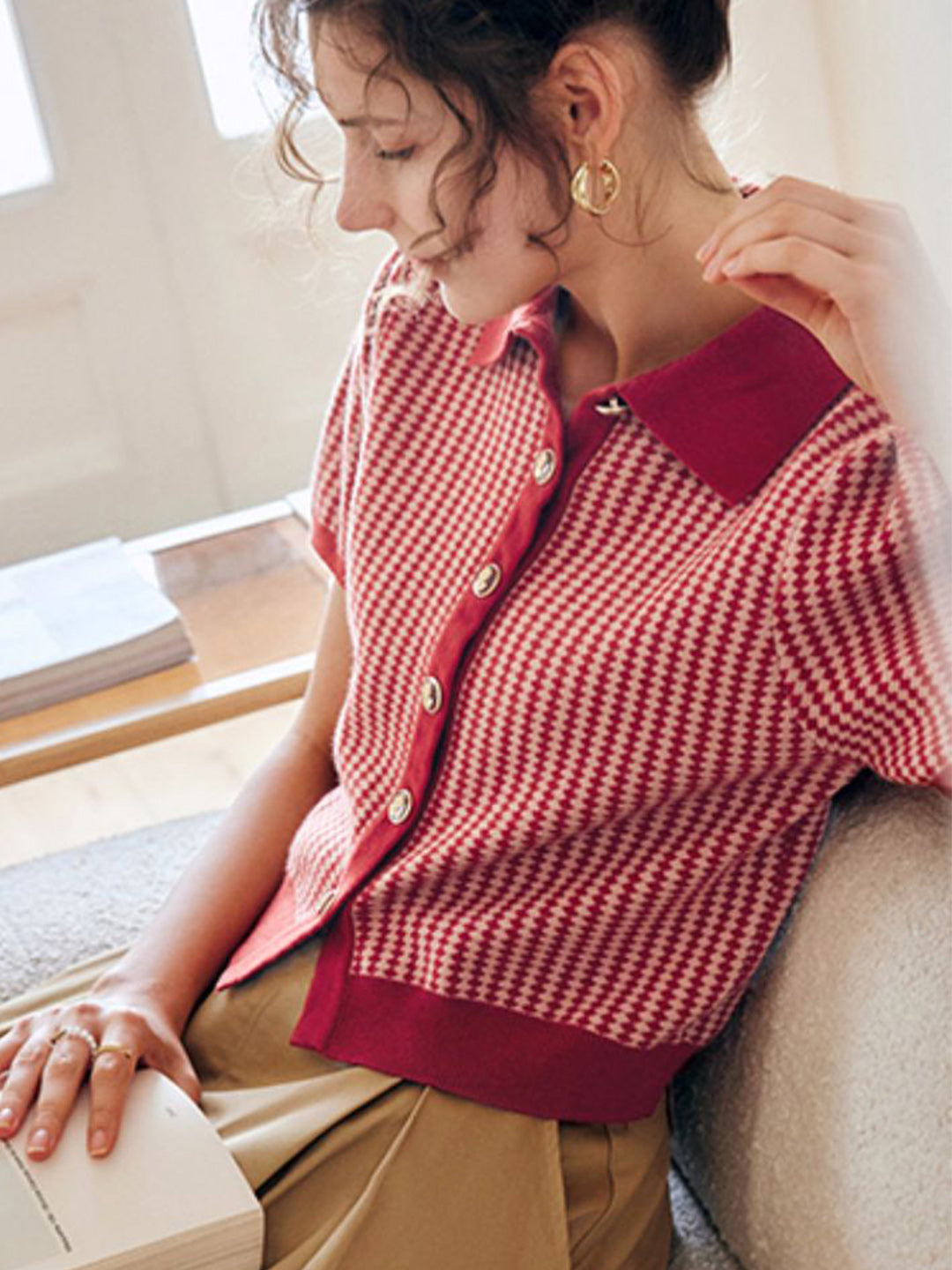 Madison Vintage Diamond Cropped Knitted Cotton Top