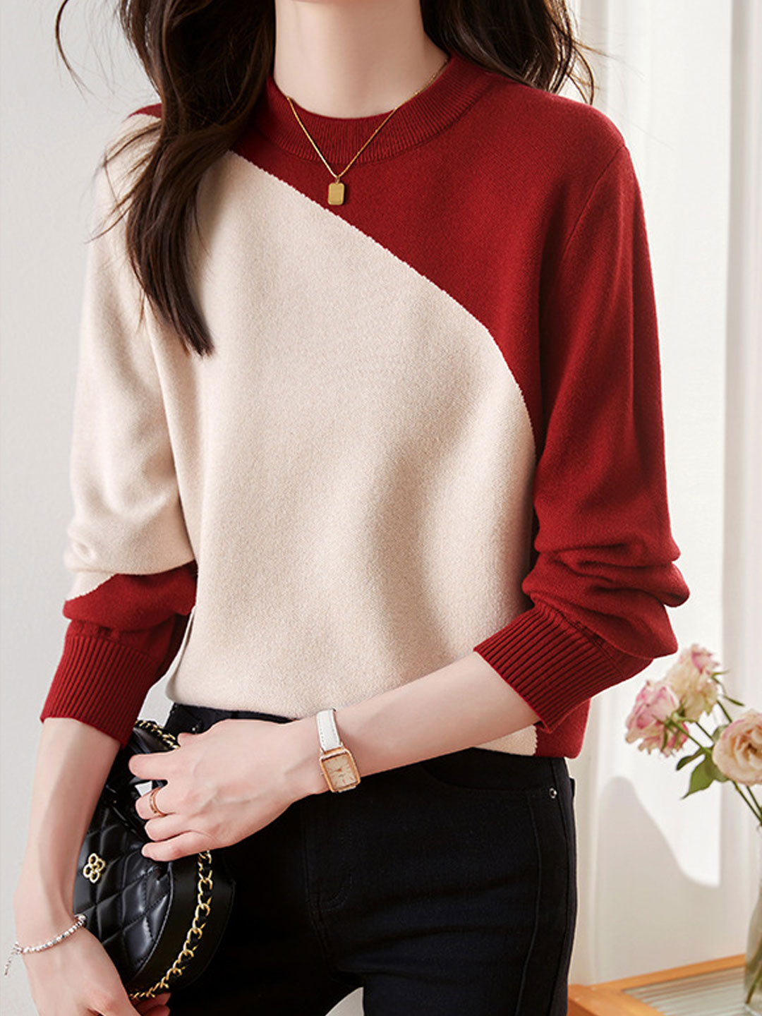 Olivia Classic Crew Neck Contrast Knitted Sweater
