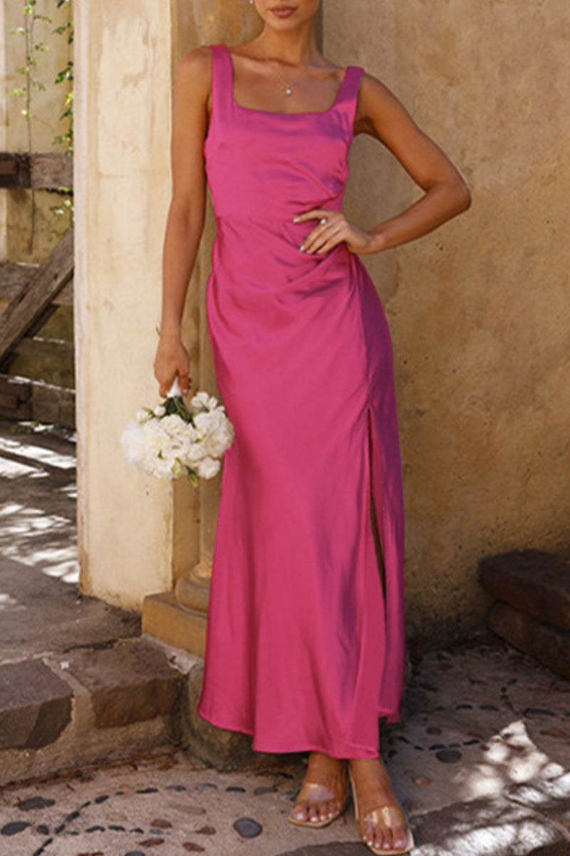 Sexy Celebrities Solid Backless Slit Square Collar Wrapped Skirt Dresses