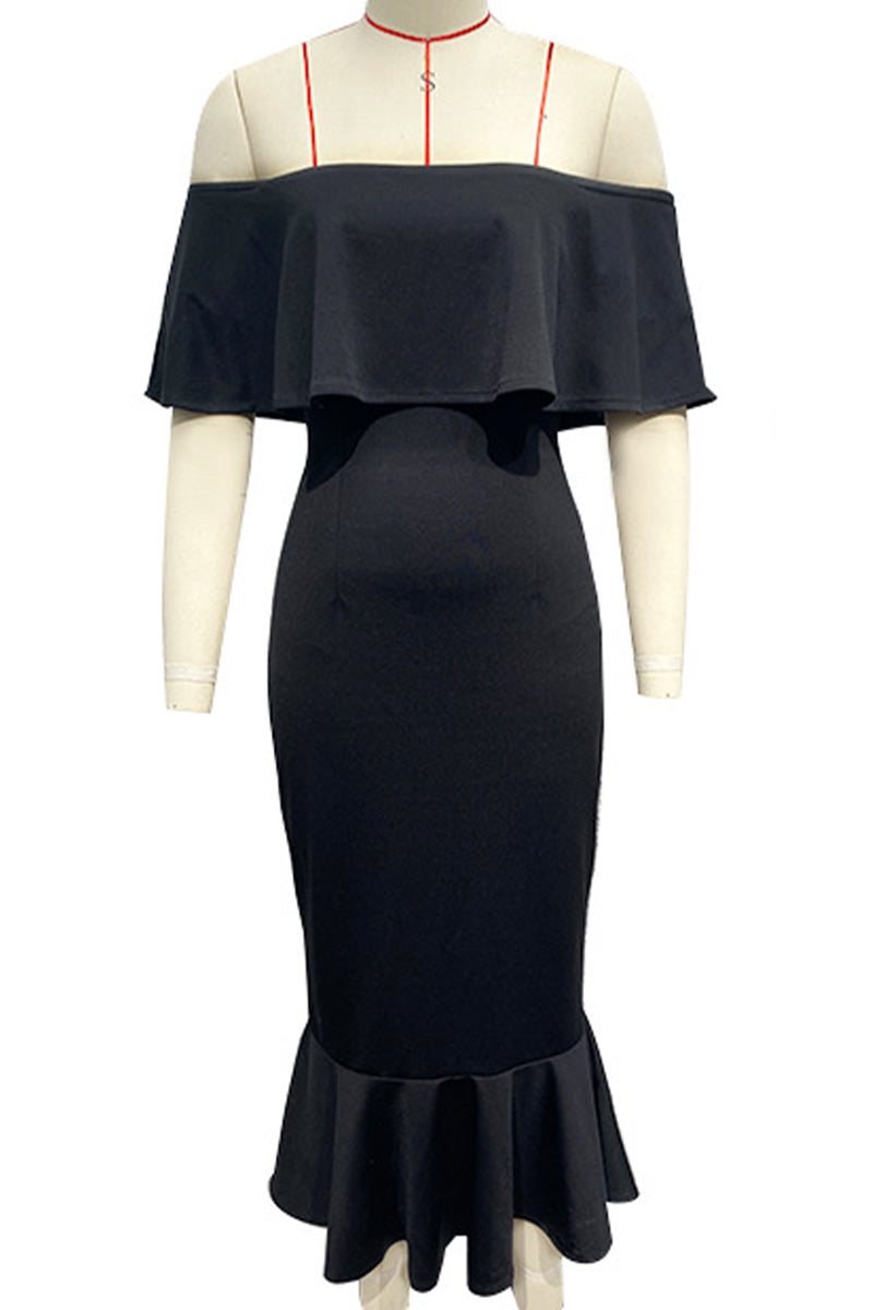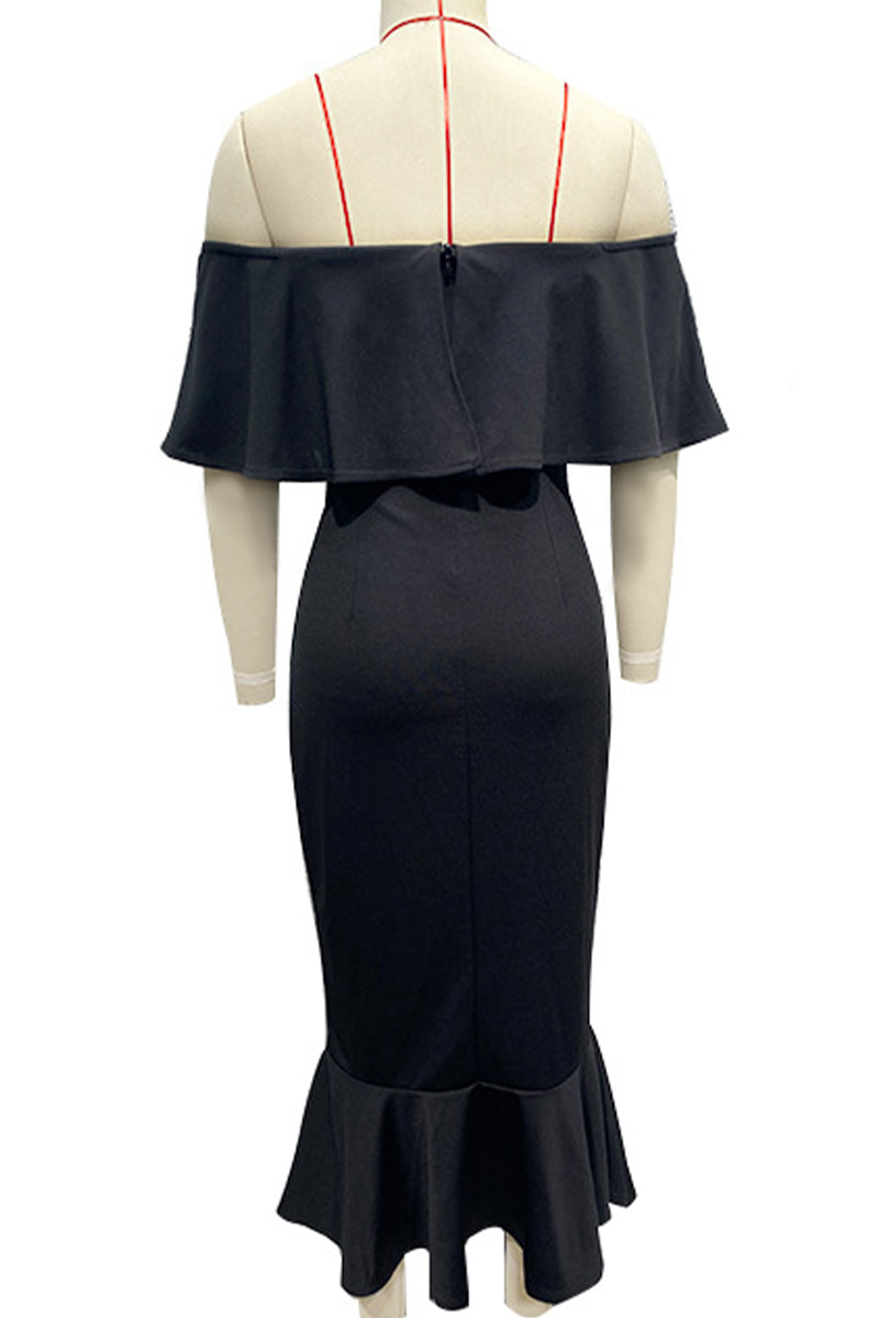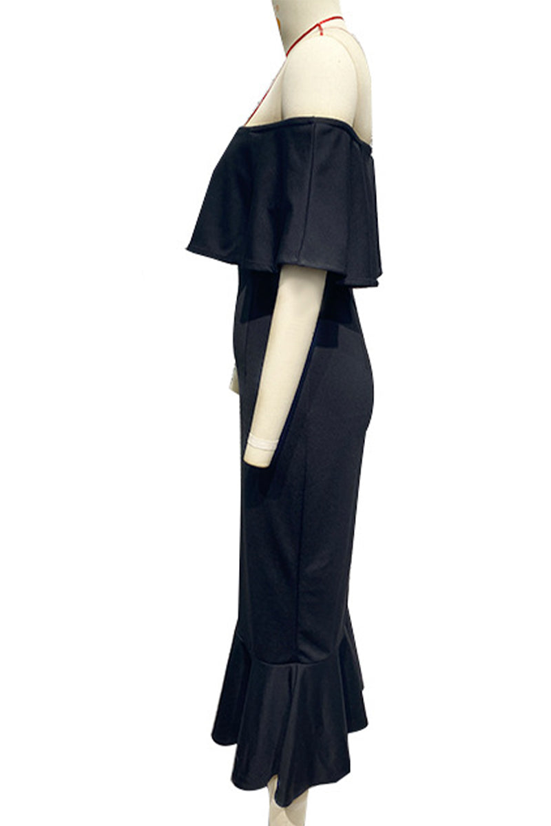 Sexy Celebrities Solid Flounce Off the Shoulder Trumpet Mermaid Dresses