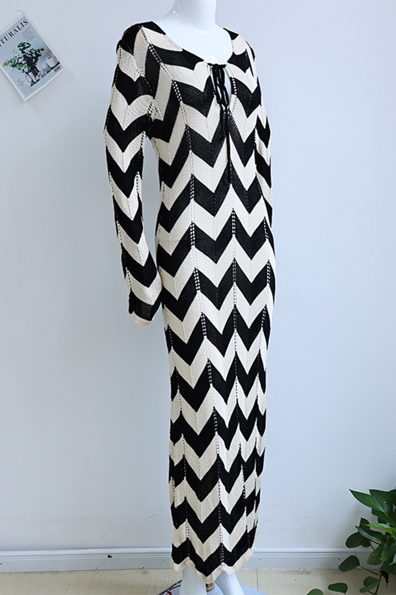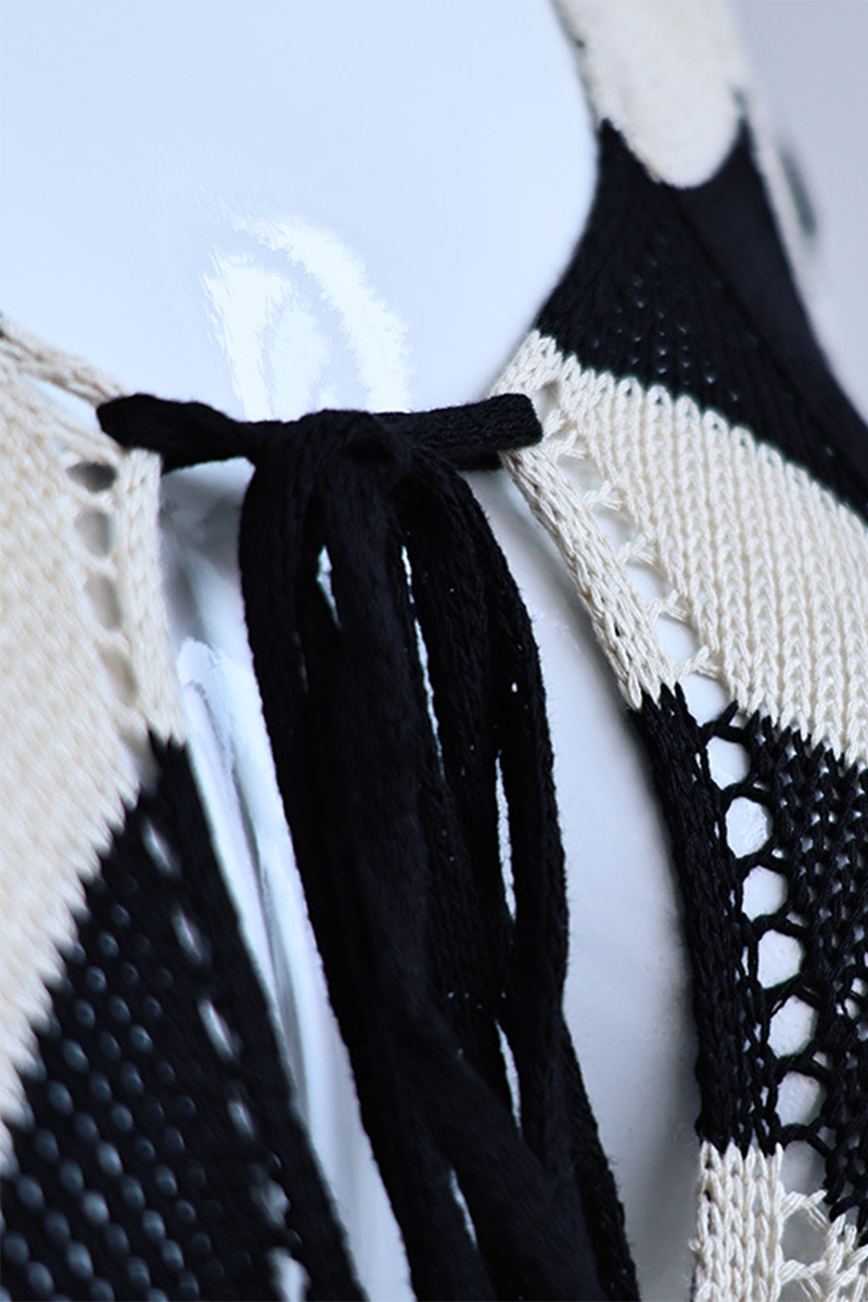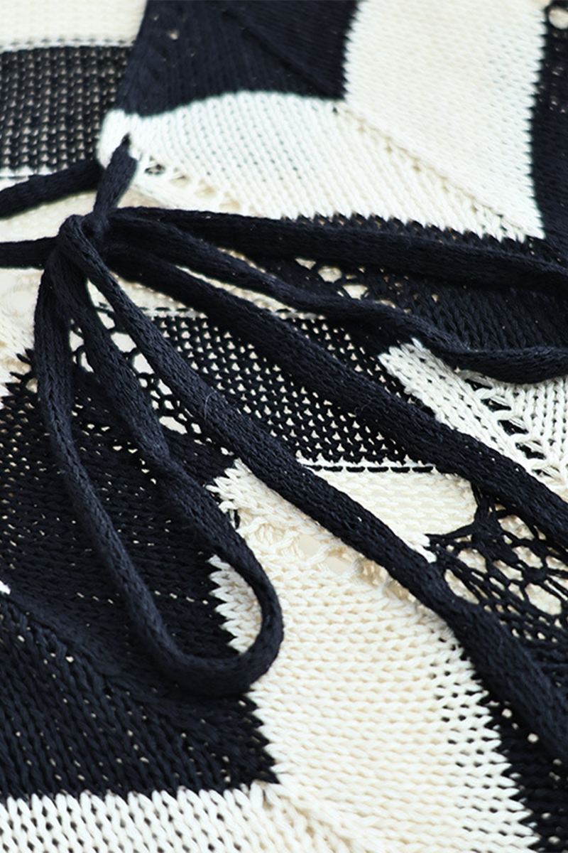 Sexy Colorblock Lace Up Weave V Neck One Step Skirt Dresses