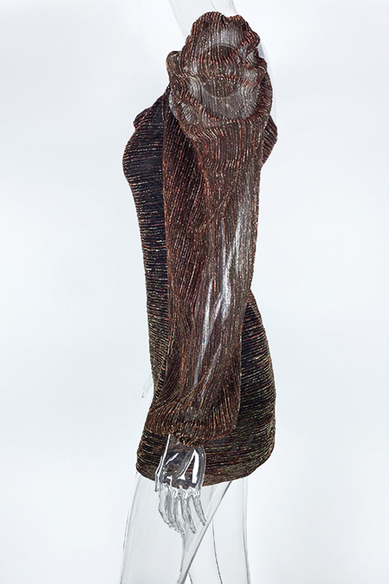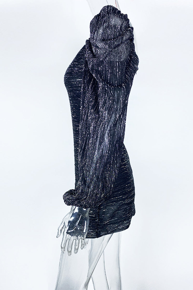 Sexy Elegant Solid Bronzing Fold Bright Silk Square Collar A Line Dresses