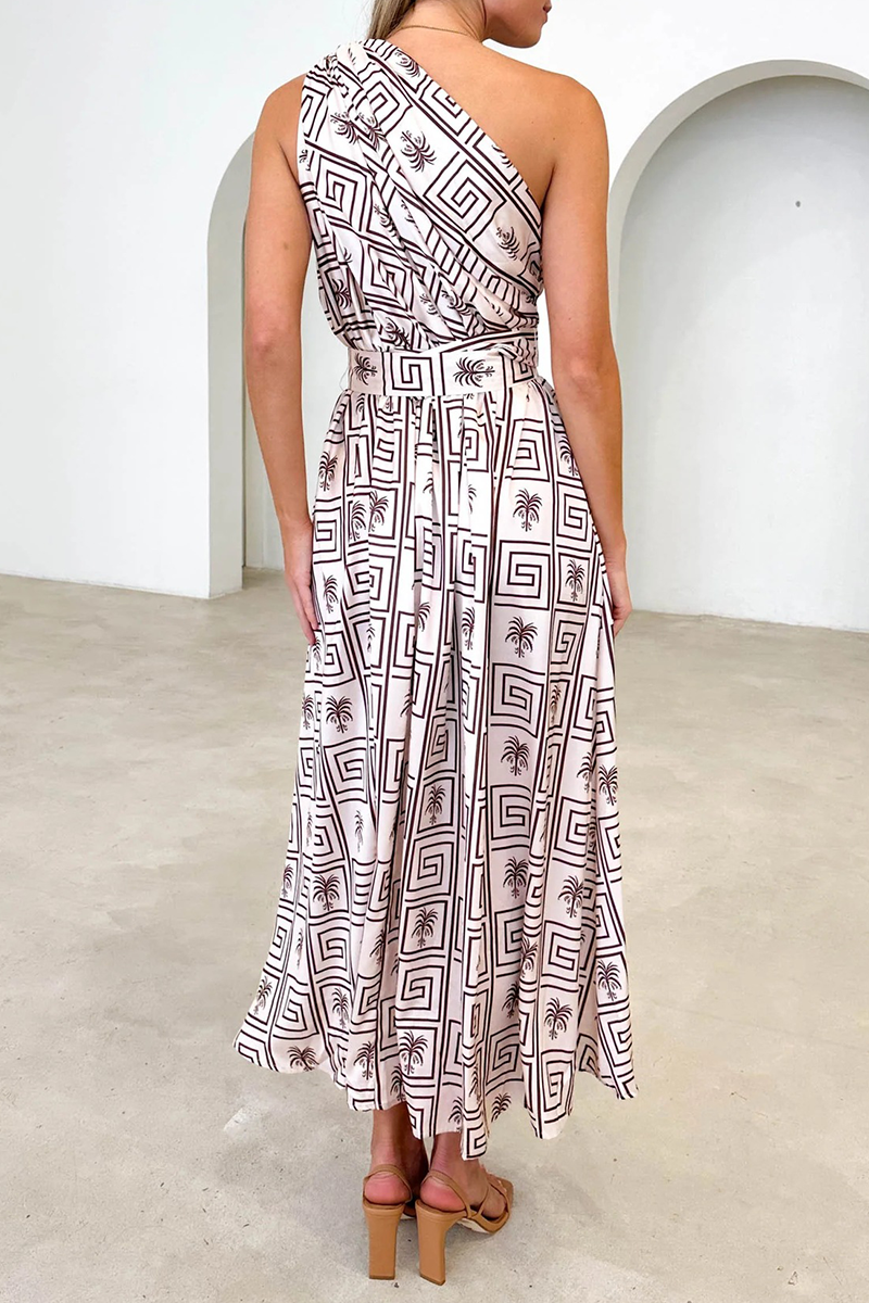 Sexy Floral Backless Oblique Collar Waist Skirt Dresses