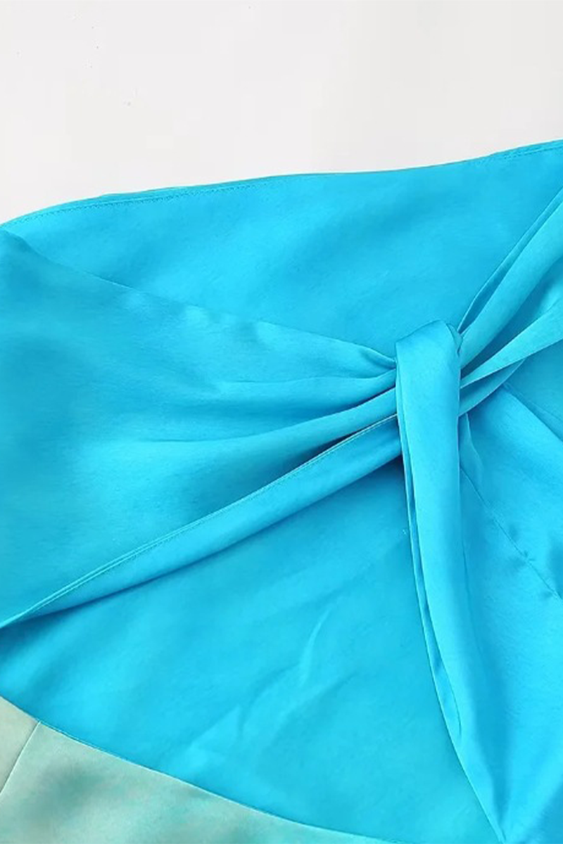 Sexy Gradient Print Backless Contrast Sloping Shoulder One Step Skirt Dresses