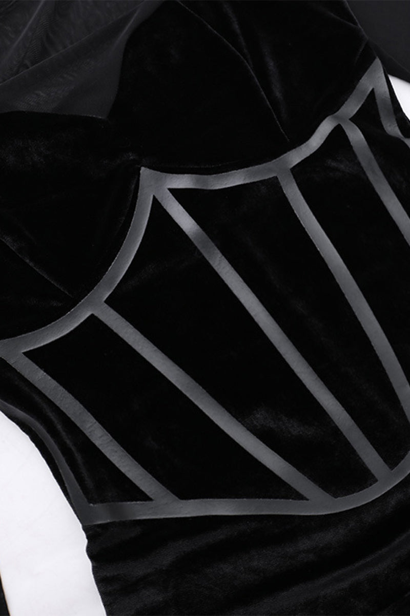 Sexy Mesh Feather Hemline Velvet O Neck Wrapped Skirt Dresses