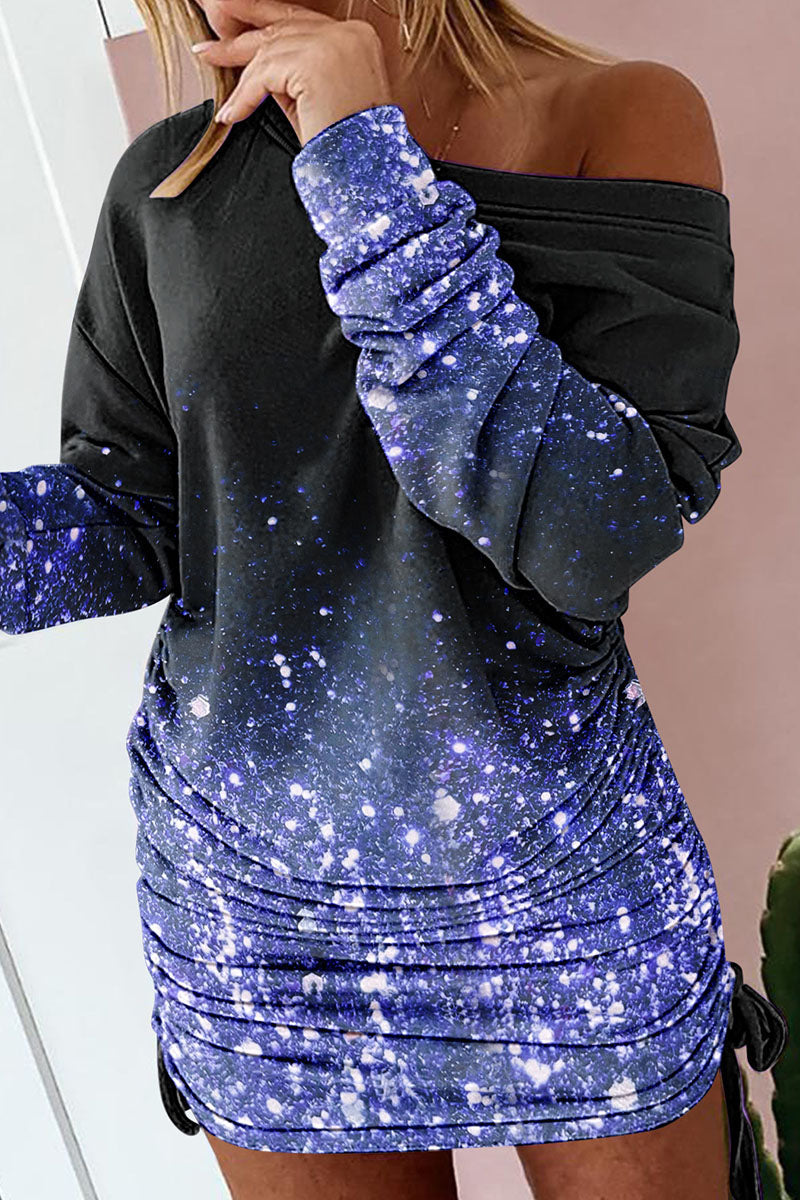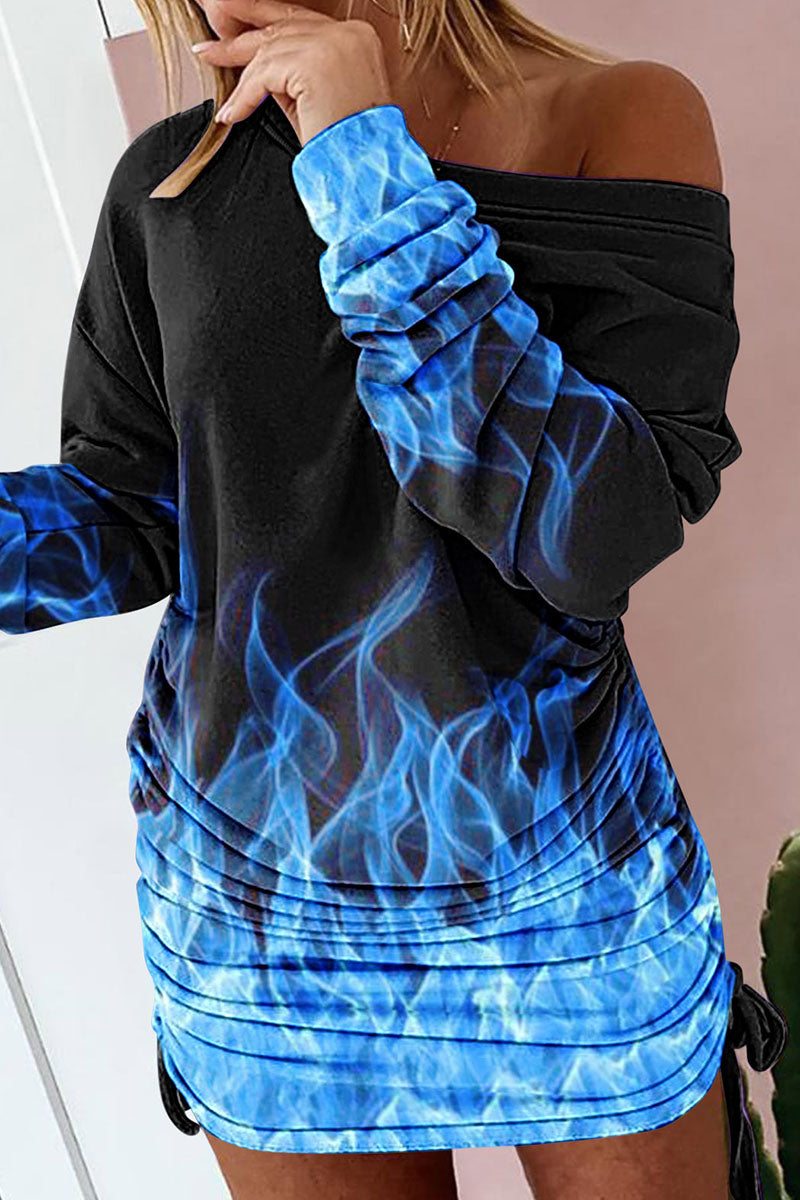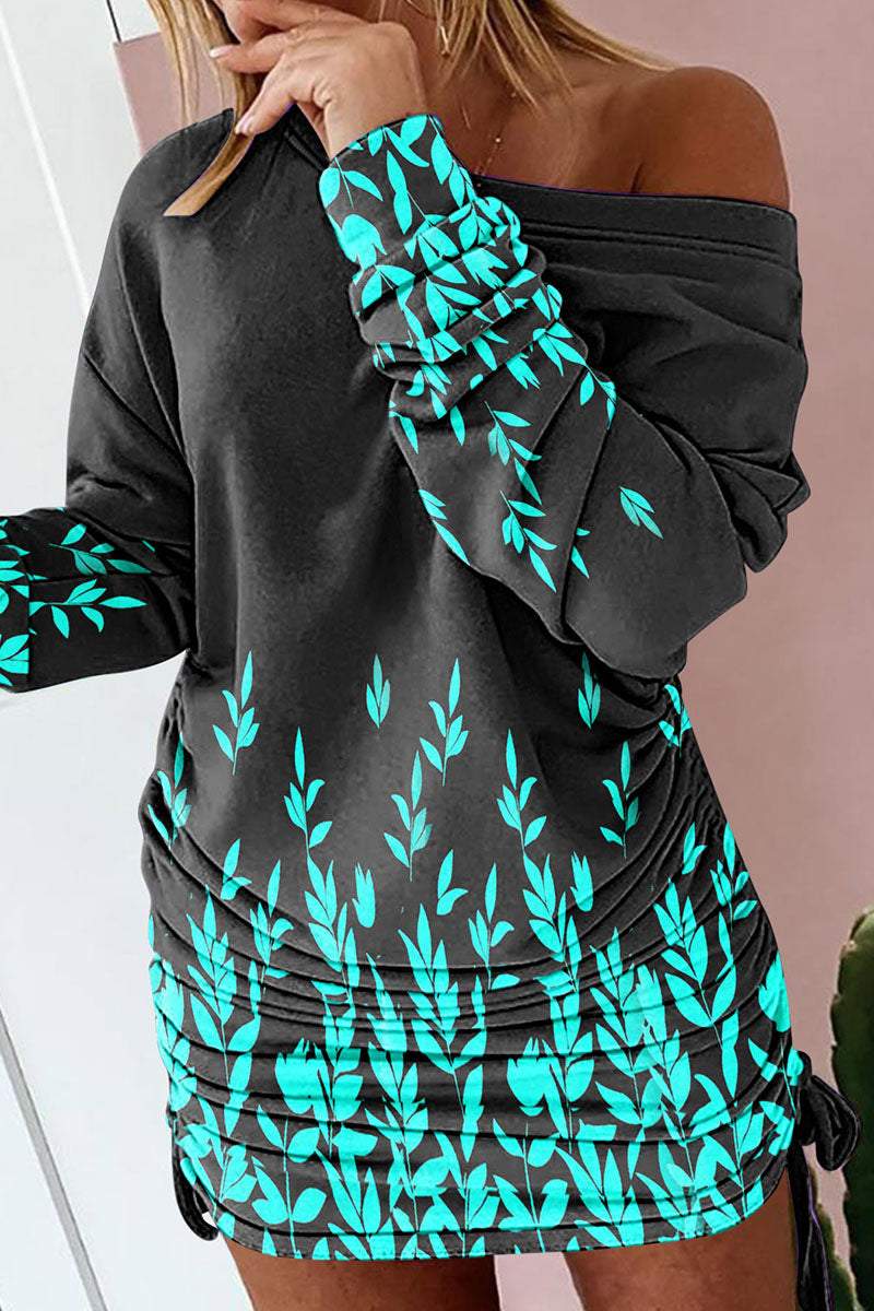 Sexy Print Patchwork Draw String Fold O Neck One Step Skirt Dresses(4 Colors)