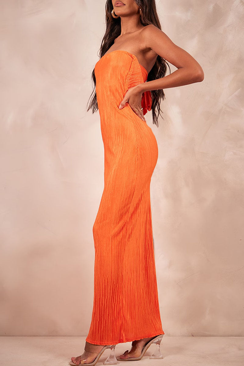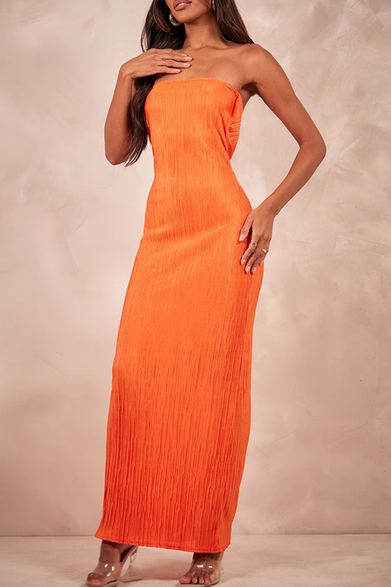 Sexy Print Patchwork Fold Strapless Pencil Skirt Dresses