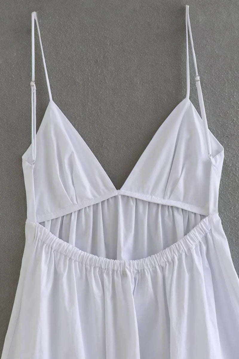 Sexy Simplicity Solid Backless Fold V Neck Sling Dress Dresses