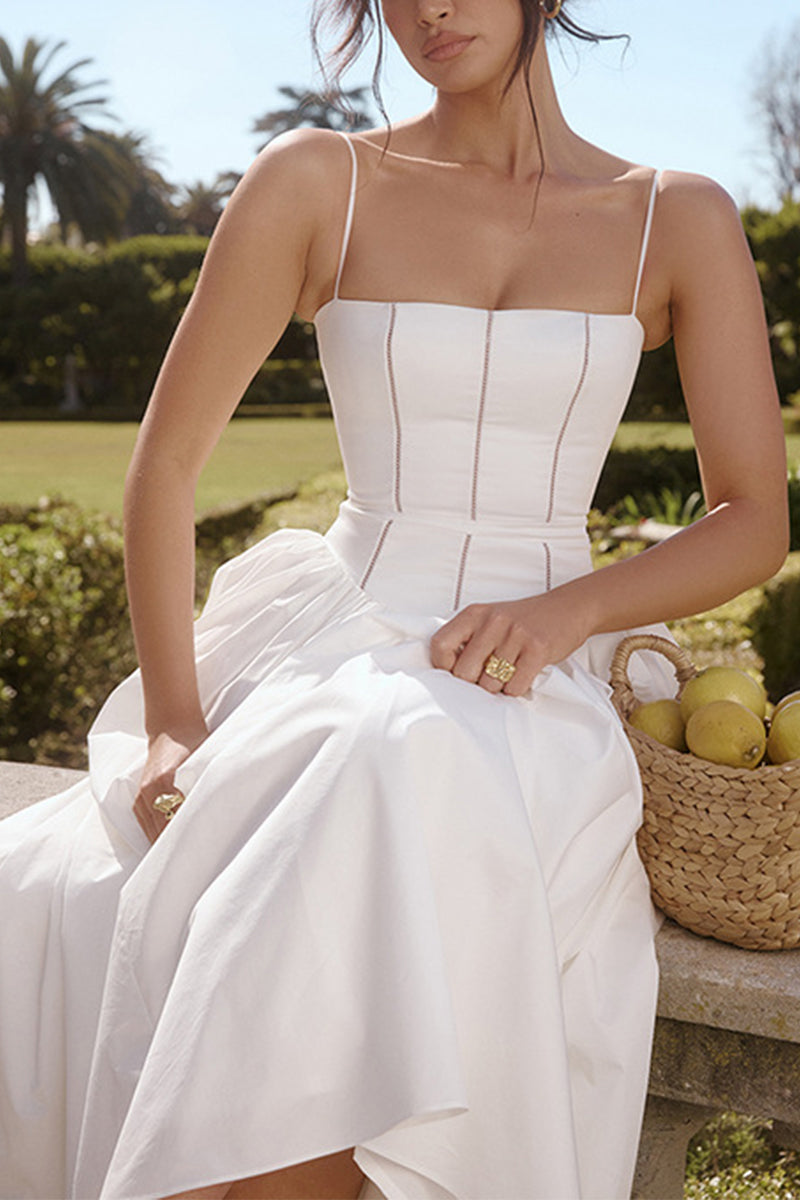 Sexy Solid Color Hollow Out Lace Up Square Neck Sling Dresses