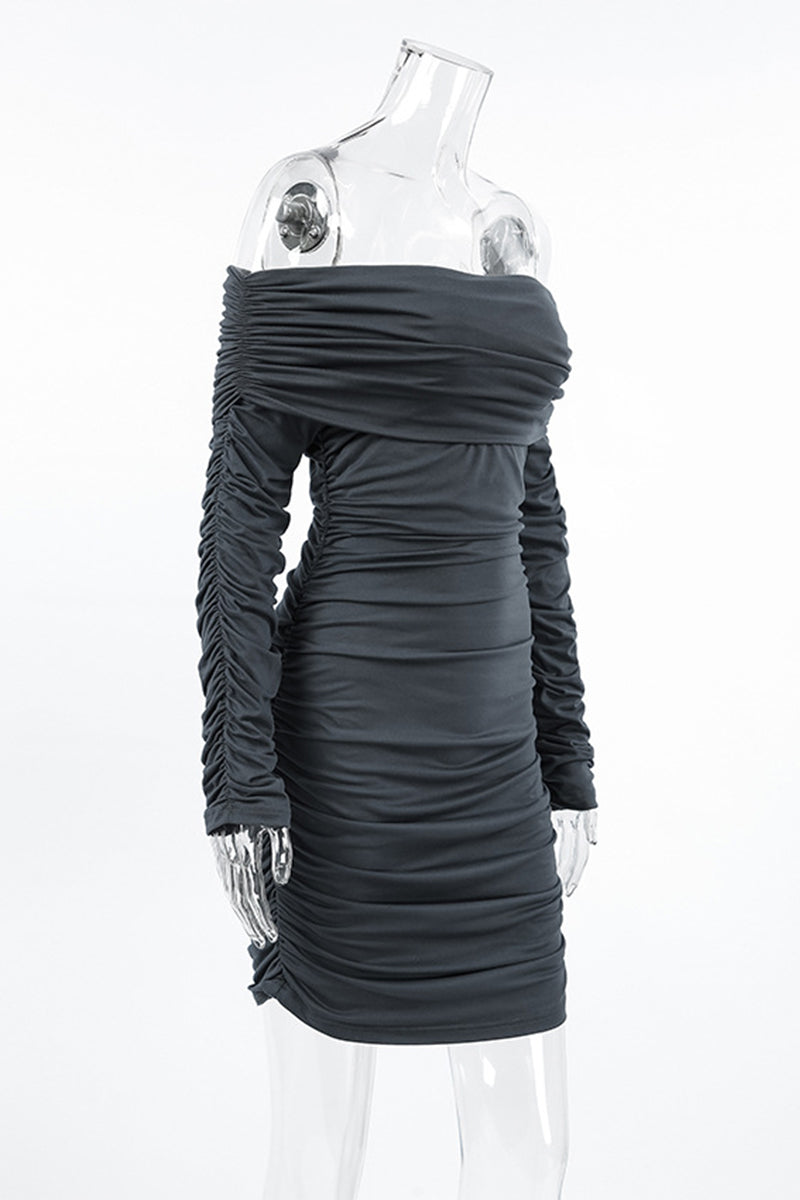 Sexy Solid Color Ruched Off Shoulder Wrapped Skirt Dresses