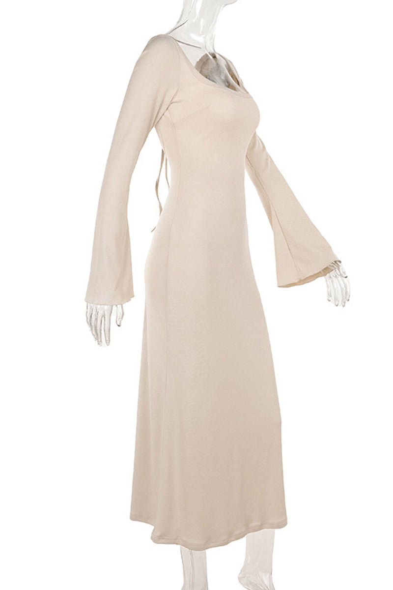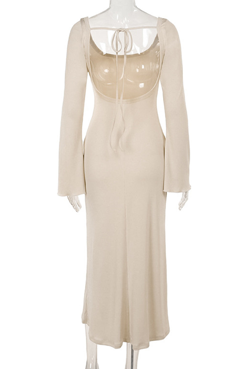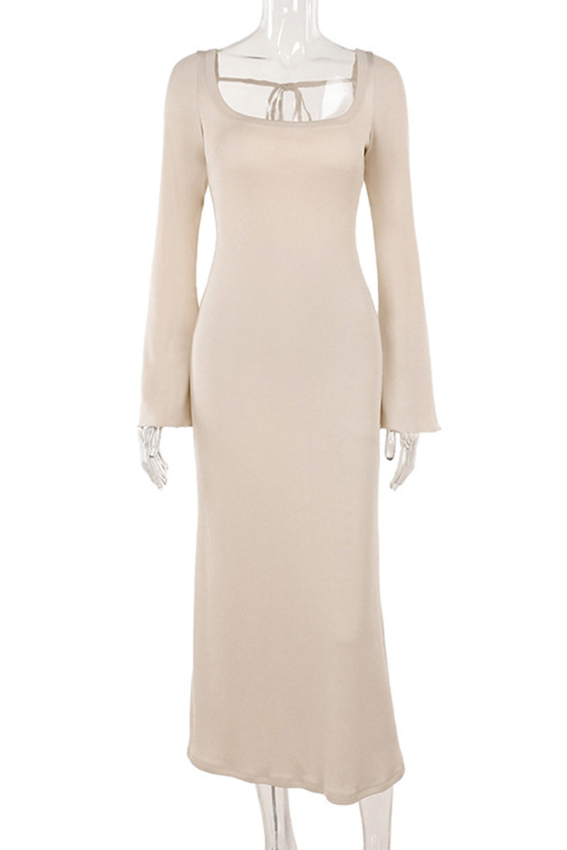 Sexy Vacation Solid Color Lace Up Backless Square Neck One Step Skirt Dresses