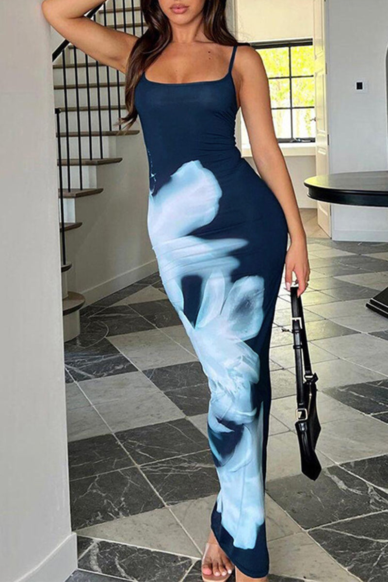 Sexy Vintage Print Flowers Backless U Neck One Step Skirt Dresses