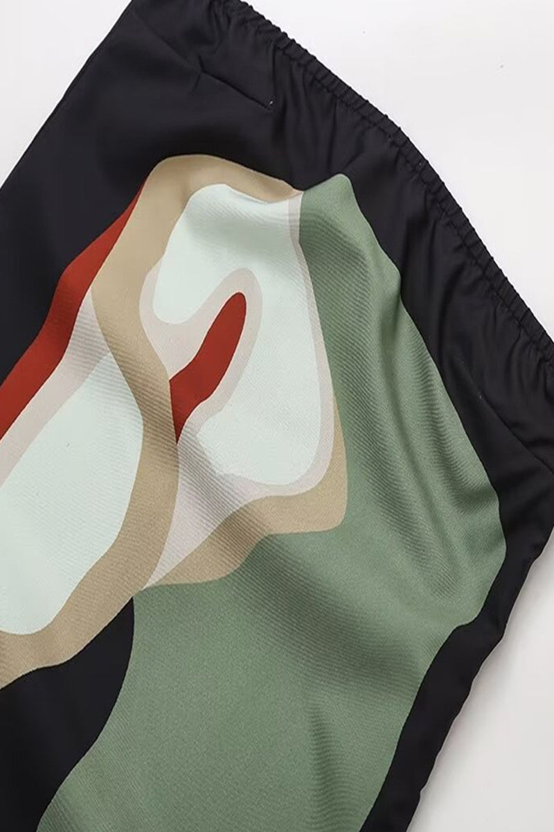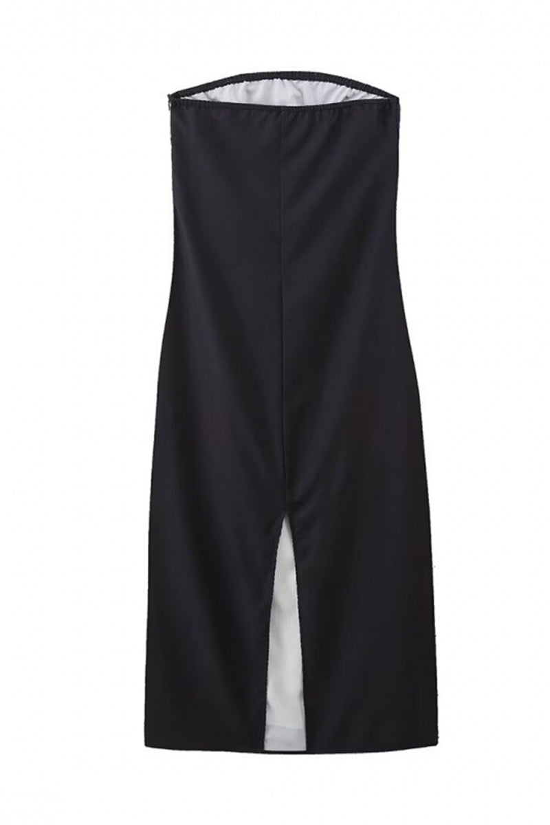 Sexy Vintage Print Flowers Slit Contrast Strapless One Step Skirt Dresses