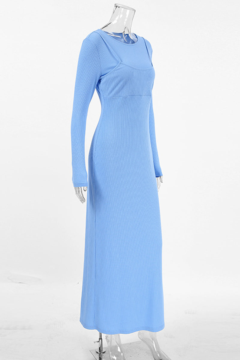 Street Elegant Potholes O Neck One Step Skirt Dresses(fake two pieces)