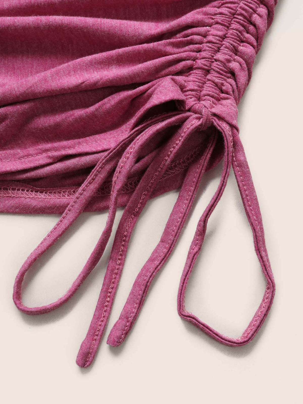 Summer Women Fashion Casual Plus Size V-Neck Drawstring Short-Sleeved T-Shirt Top
