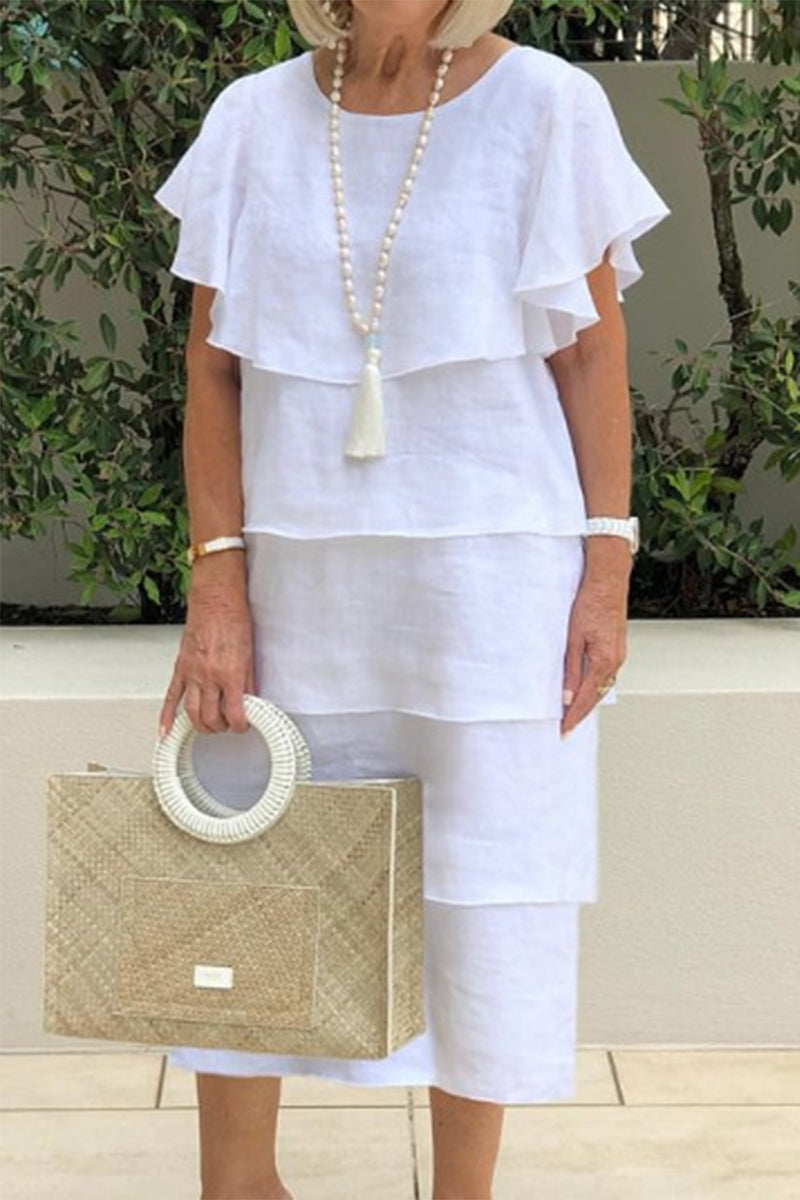 Sweet Elegant Solid Flounce O Neck Cake Skirt Dresses