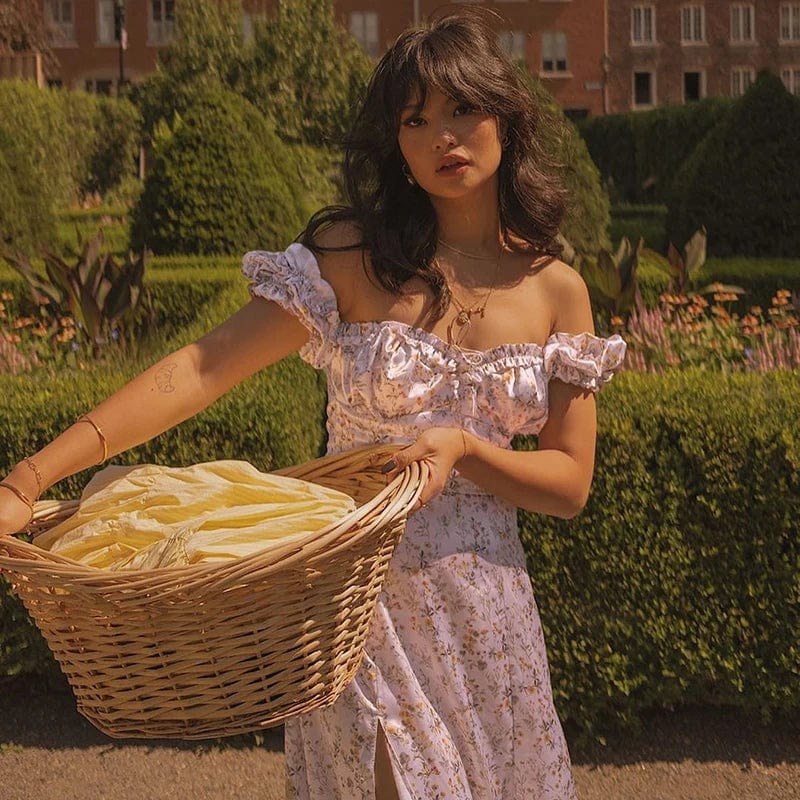 Stay chic and stylish this summer with our Theresa Midi Dress. Featuring a beautiful floral print, off shoulder design, and puff sleeves, this maxi dress is perfect for any occasion. With its lace-up side split and mid-calf length, it's both elegant and functional. Don't miss out on this must-have aesthetic dress!
