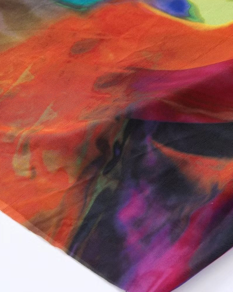 Tulle Printed Mesh Strapless Tube Midi Dress