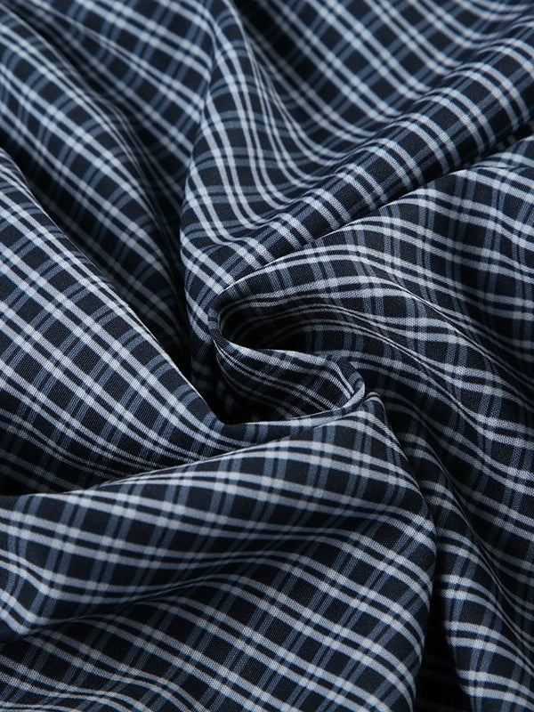 Delicate Lace Splicing: The top is adorned with intricate lace splicing along the neckline and hem, adding a layer of femininity and elegance. The lace detailing contrasts beautifully with the bold plaid, creating a balanced and eye-catching design.
