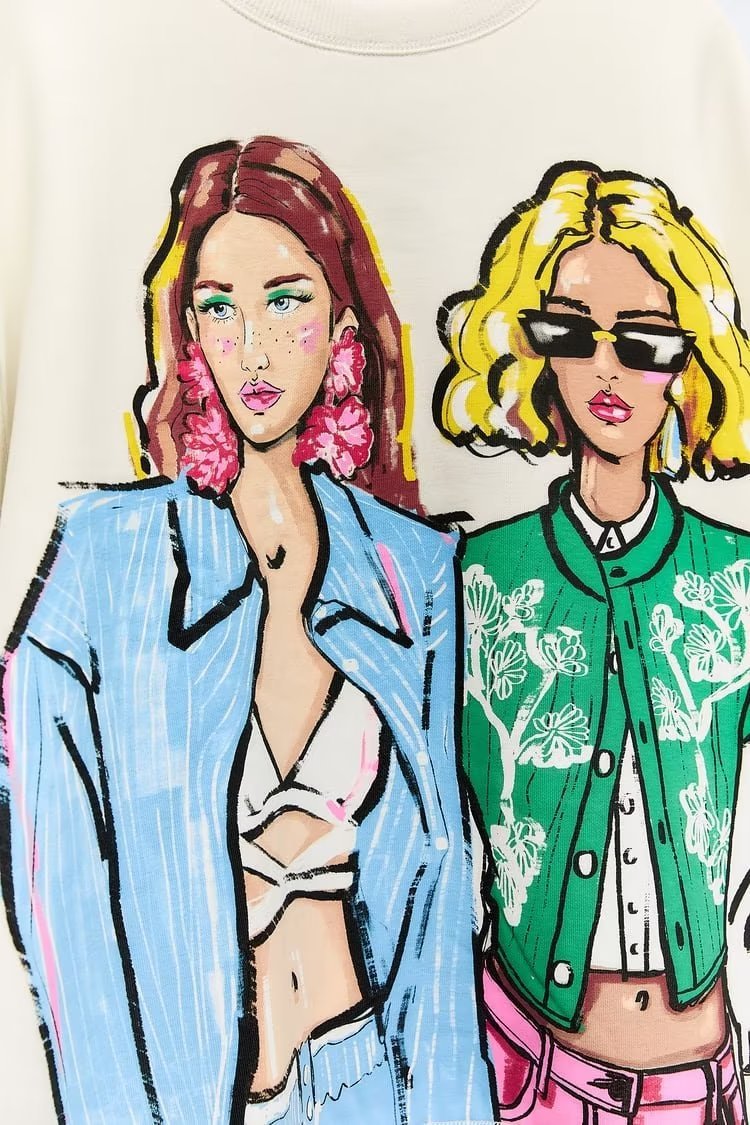 Women Casual Loose Cartoon Girl'S Printed Round Neck Long Sleeve Sweatshirt