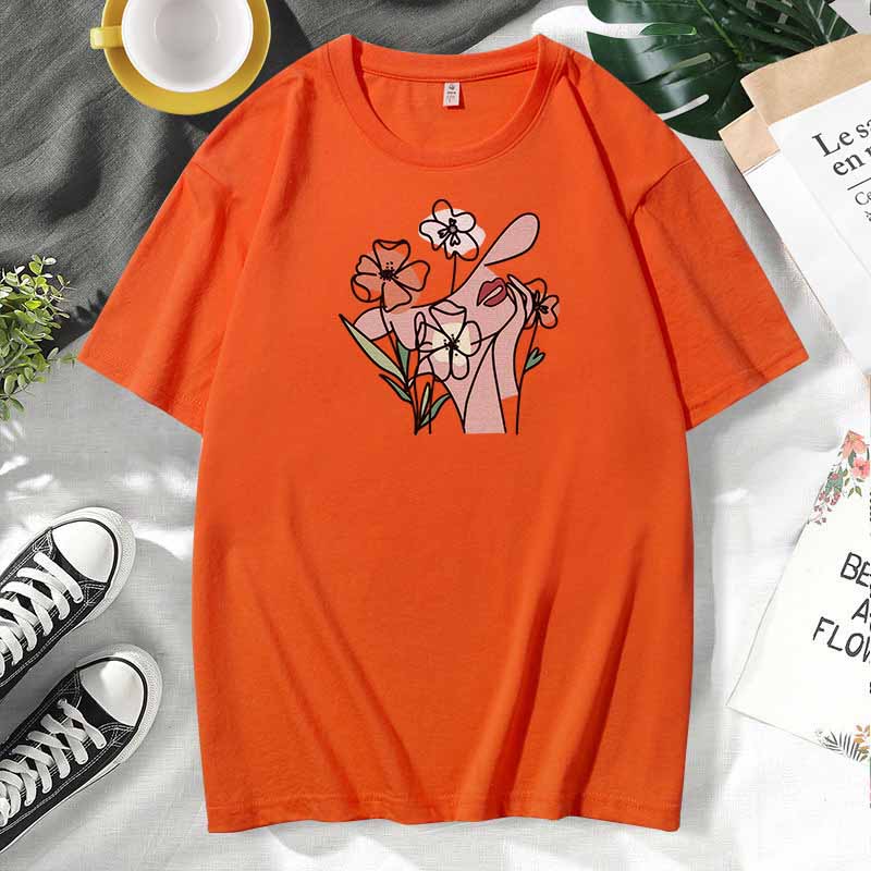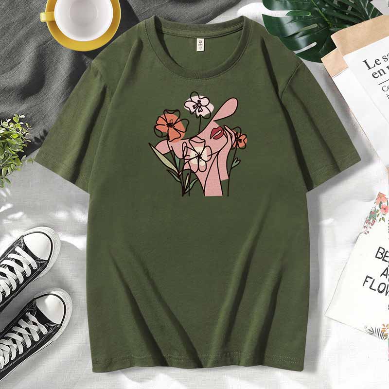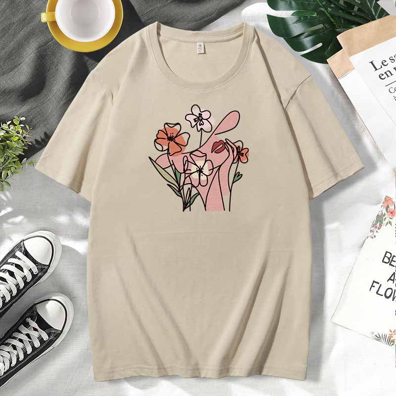 Women Casual Print Cotton Plus Size Short Sleeve T-Shirt