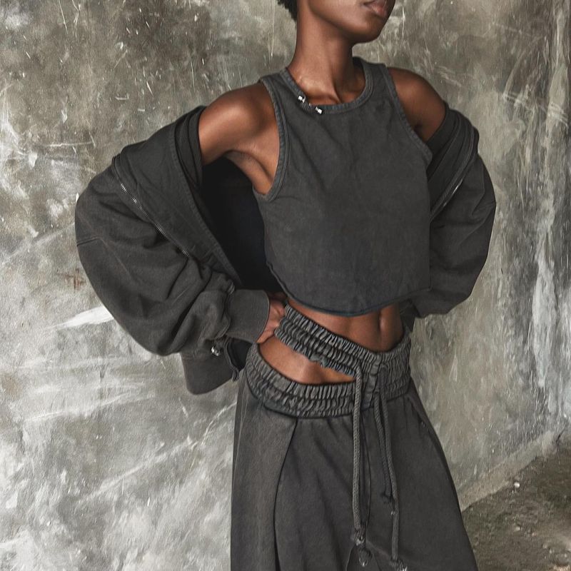 Women Casual Retro Loose Hollow Drawstring Straight-Leg Sweatpants