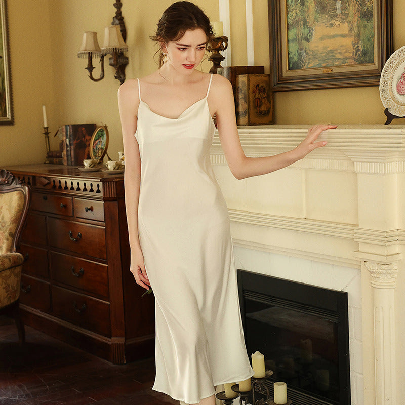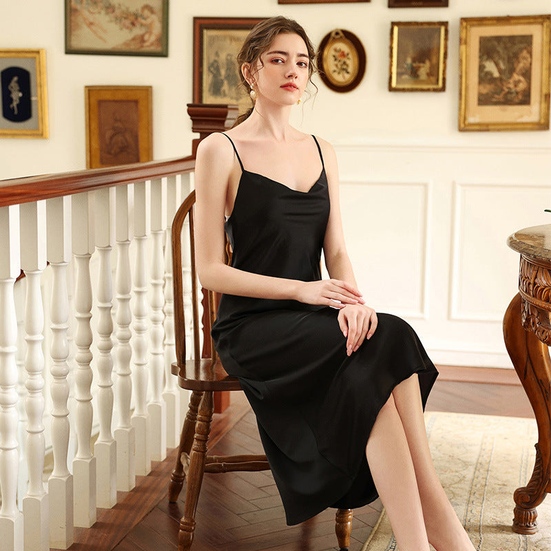 Women Casual Sexy Solid Color V-Neck Spaghetti Strap Nightdress