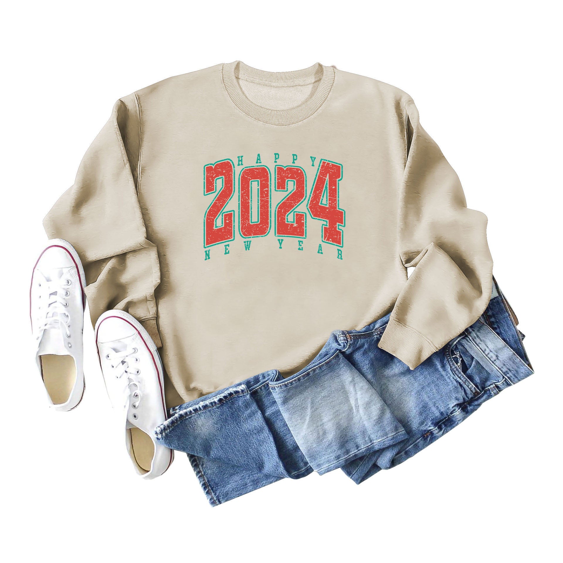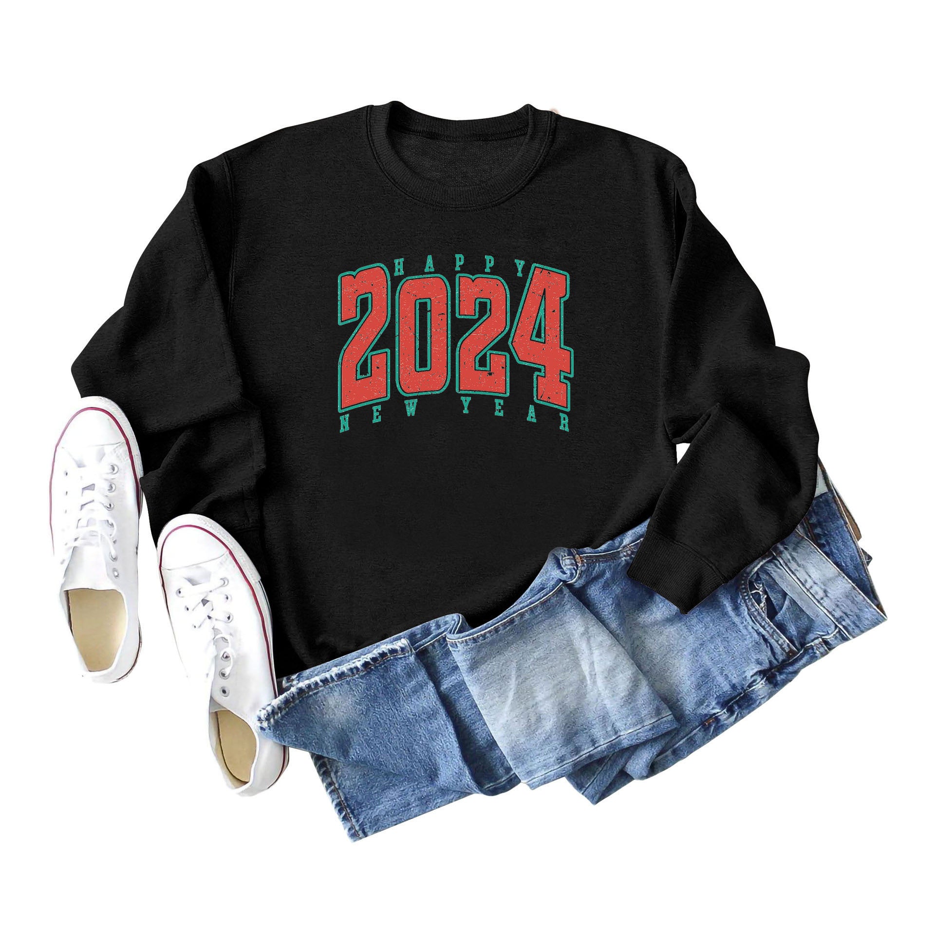 Women Fashion Casual 2024 Letter Print Crewneck Long Sleeve Sweatshirt