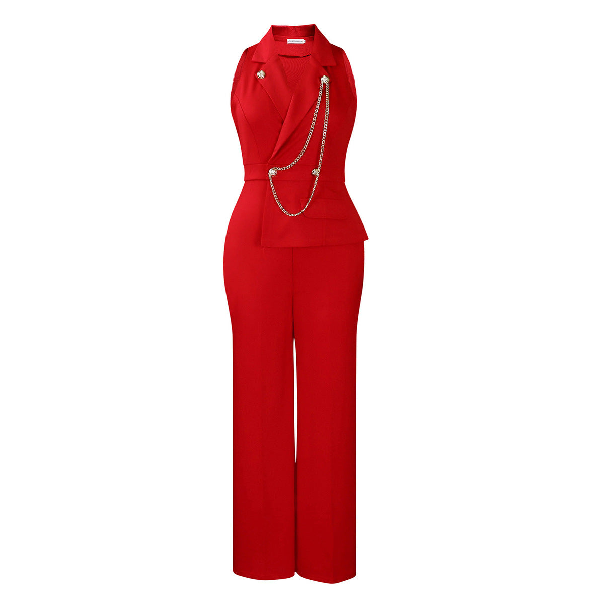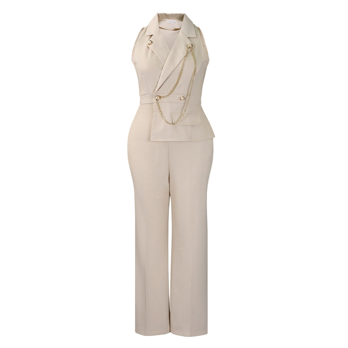 Women Fashion Casual Lapel Sleeveless Chain Wide Leg Jumpsuit