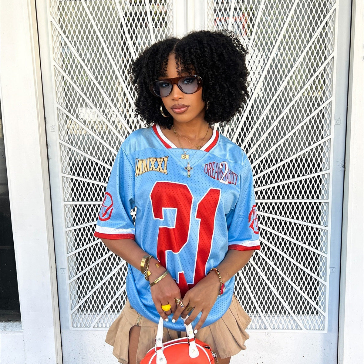Women Fashion Casual Loose Contrast Color Digital Print Short Sleeve V-Neck Jersey T-Shirt