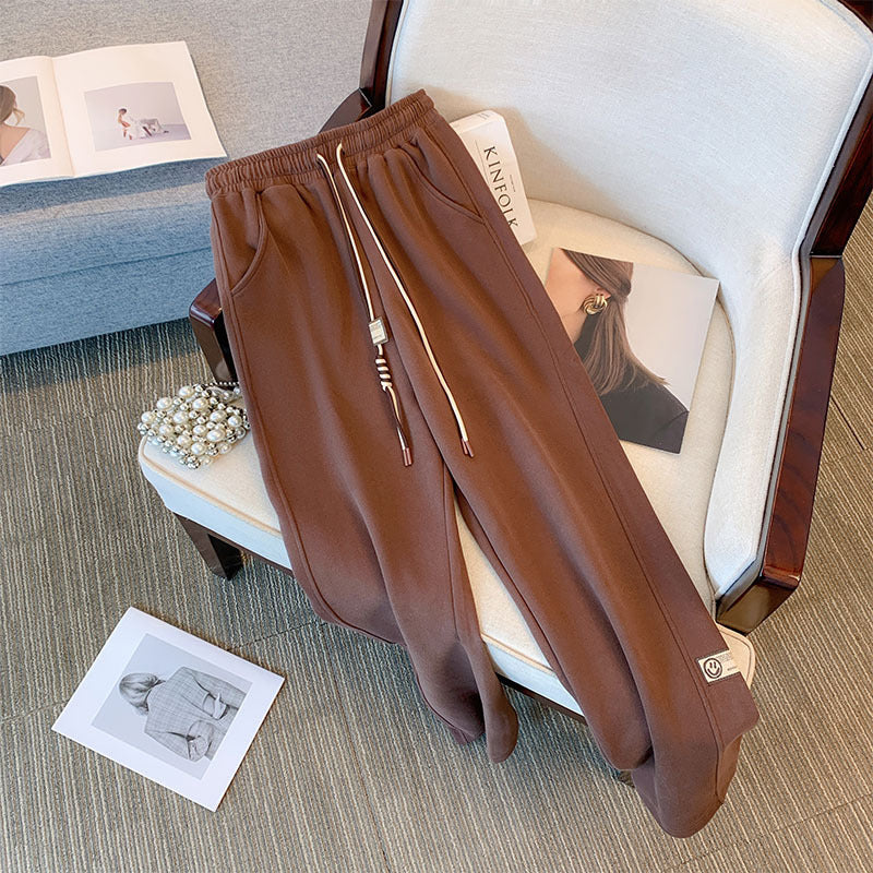 Women Fashion Casual Plus Size Solid Color High Waist Drawstring Pants
