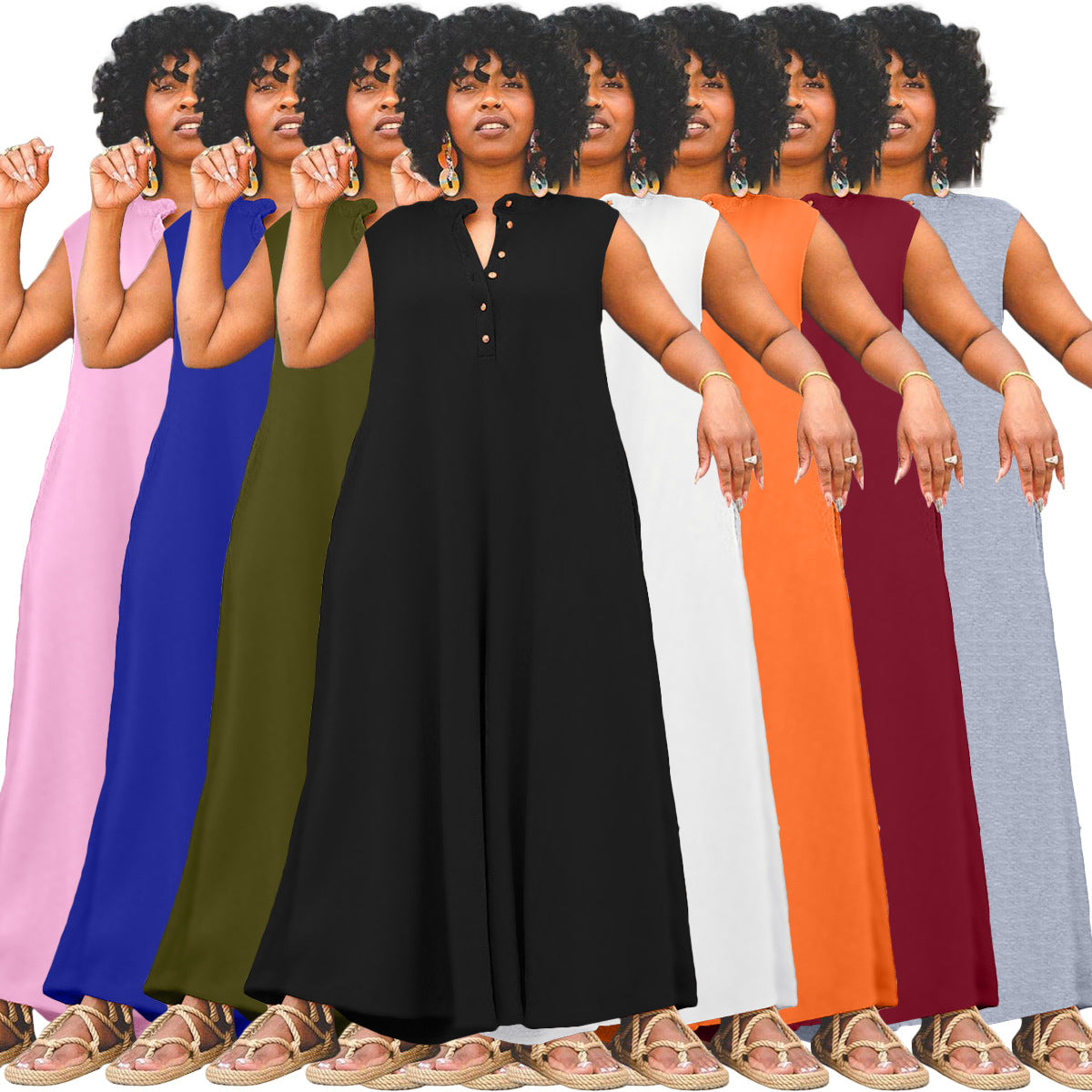 Women Fashion Casual Plus Size Solid Color Sleeveless Loose Jumpsuits