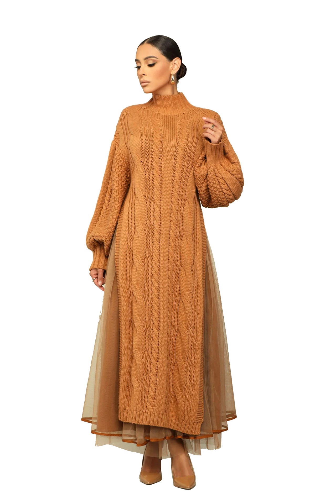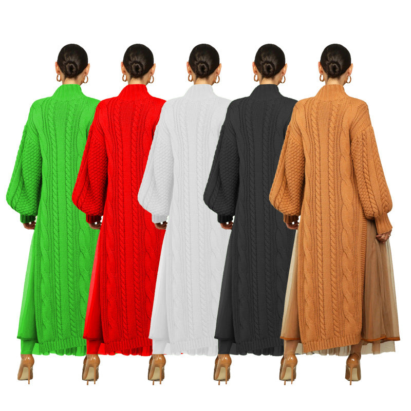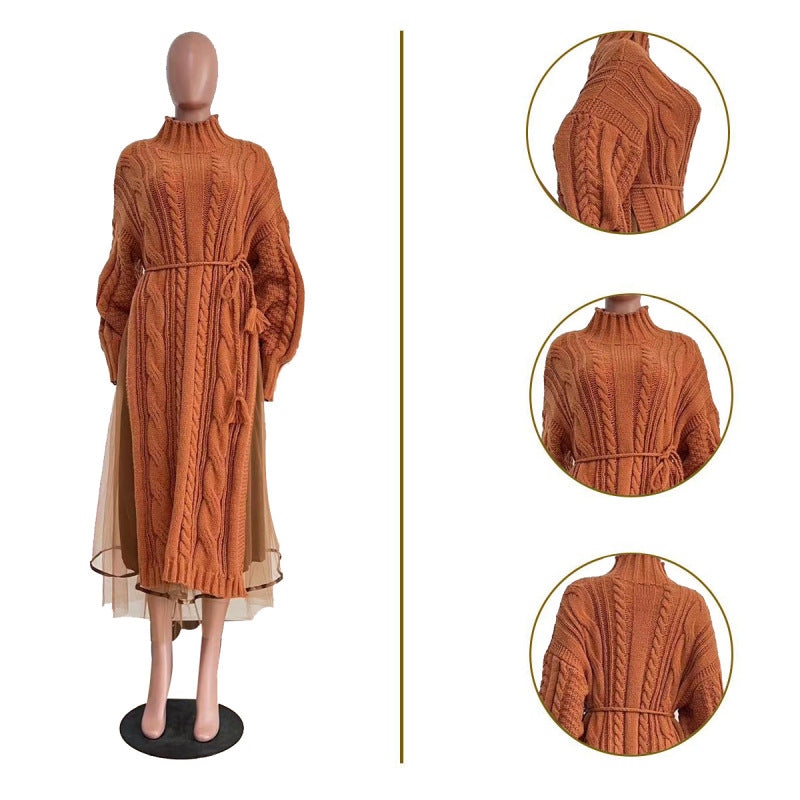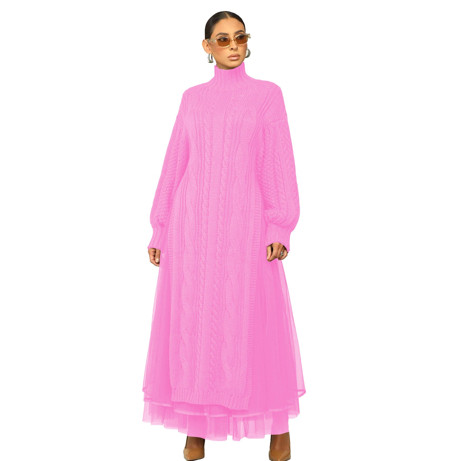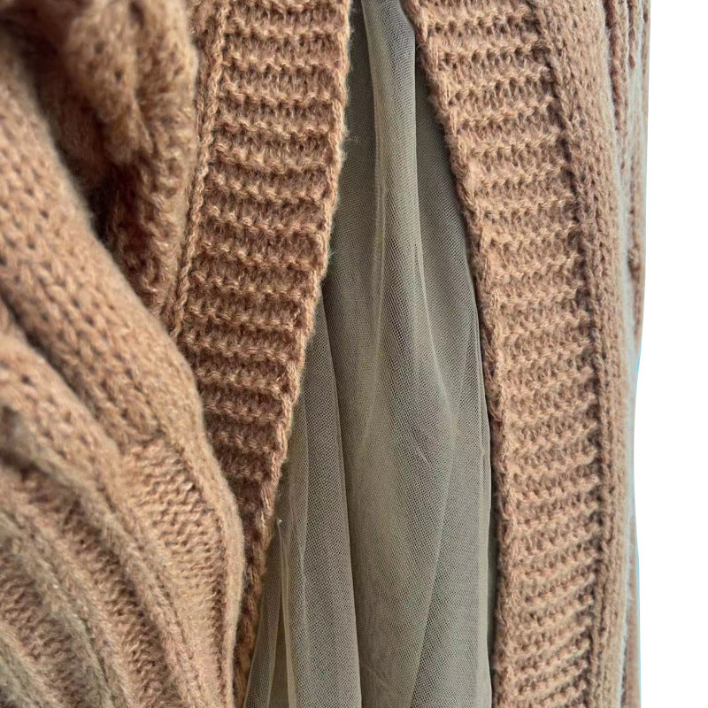 Women Fashion Casual Solid Color Sweater Split Mesh Skirt Two Pieces Set