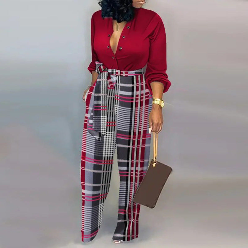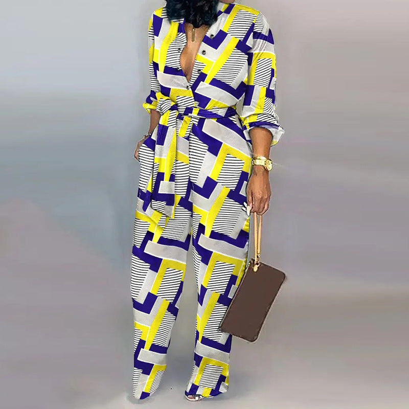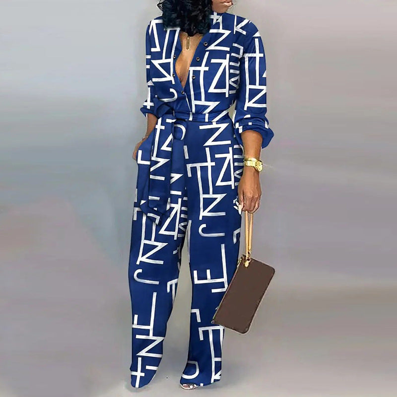 Women Fashion Loose Printed High Waist Casual Straight Jumpsuits